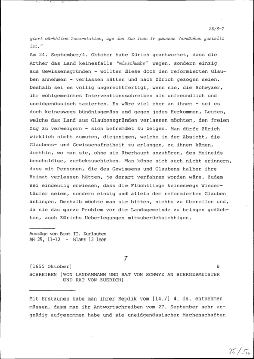 Schreiben des Landammanns und Rats von Schwyz an Bürgermeister und Rat Zürich