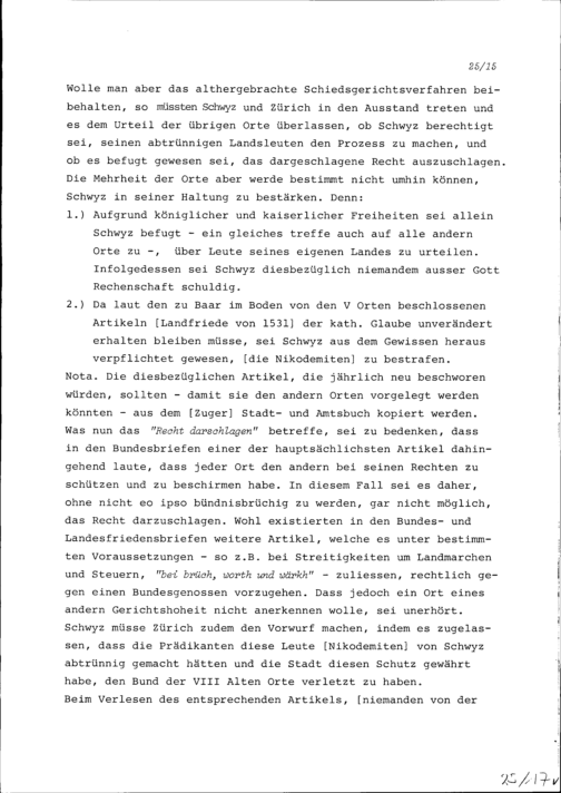 Bericht des Ammanns und Rats von Stadt und Amt Zug für die Tagsatzung in Baden