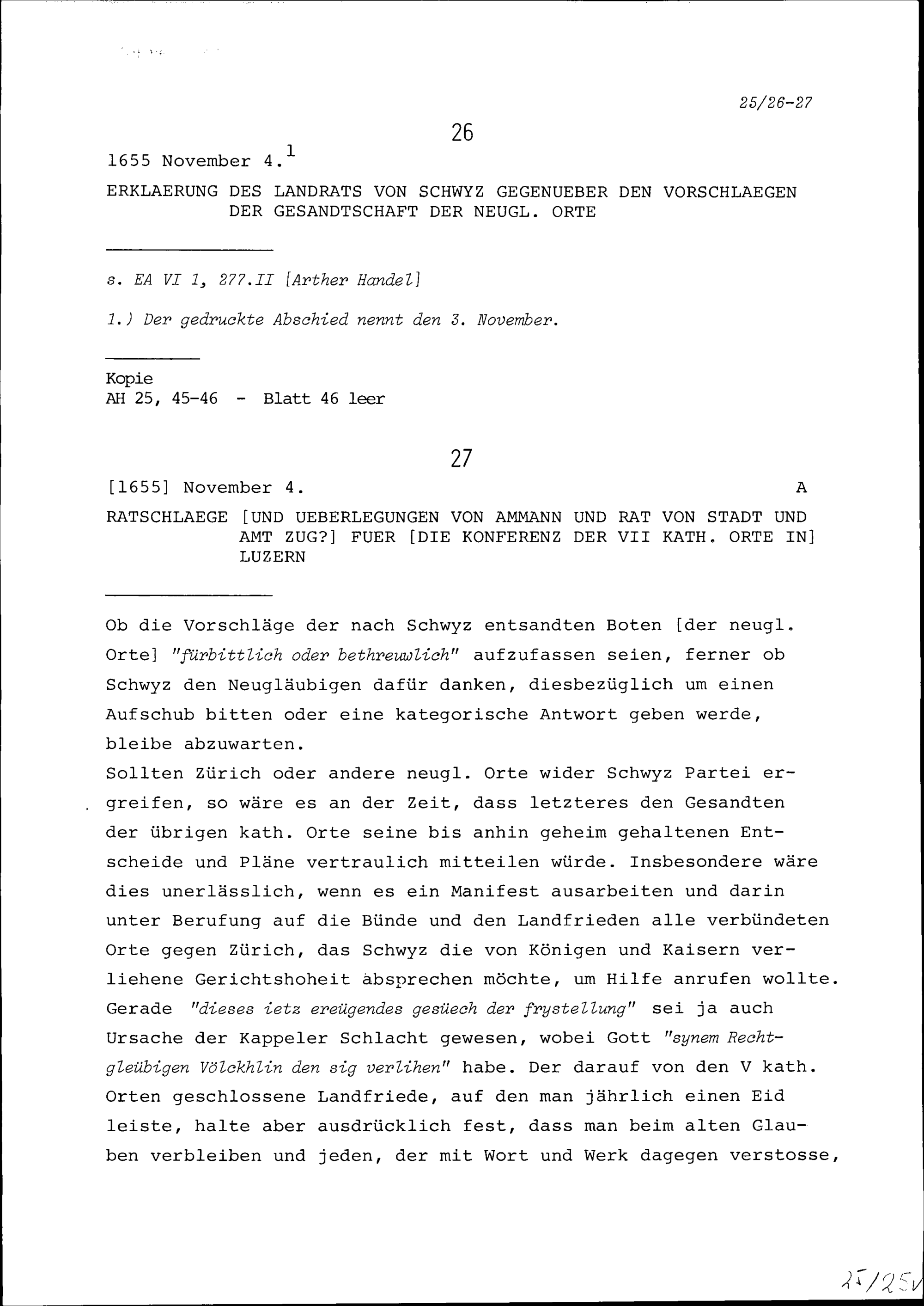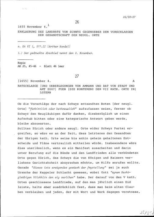 Erklärung des Landrats von Schwyz gegenüber den Vorschlägen der Gesandtschaft der Neugläubigen Orte