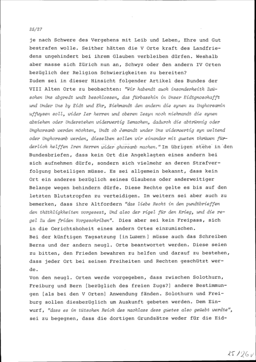 Ratschläge und Überlegungen des Ammanns und Rats von Stadt und Amt Zug für die Konferenz der Sieben Katholischen Orte in Luzern