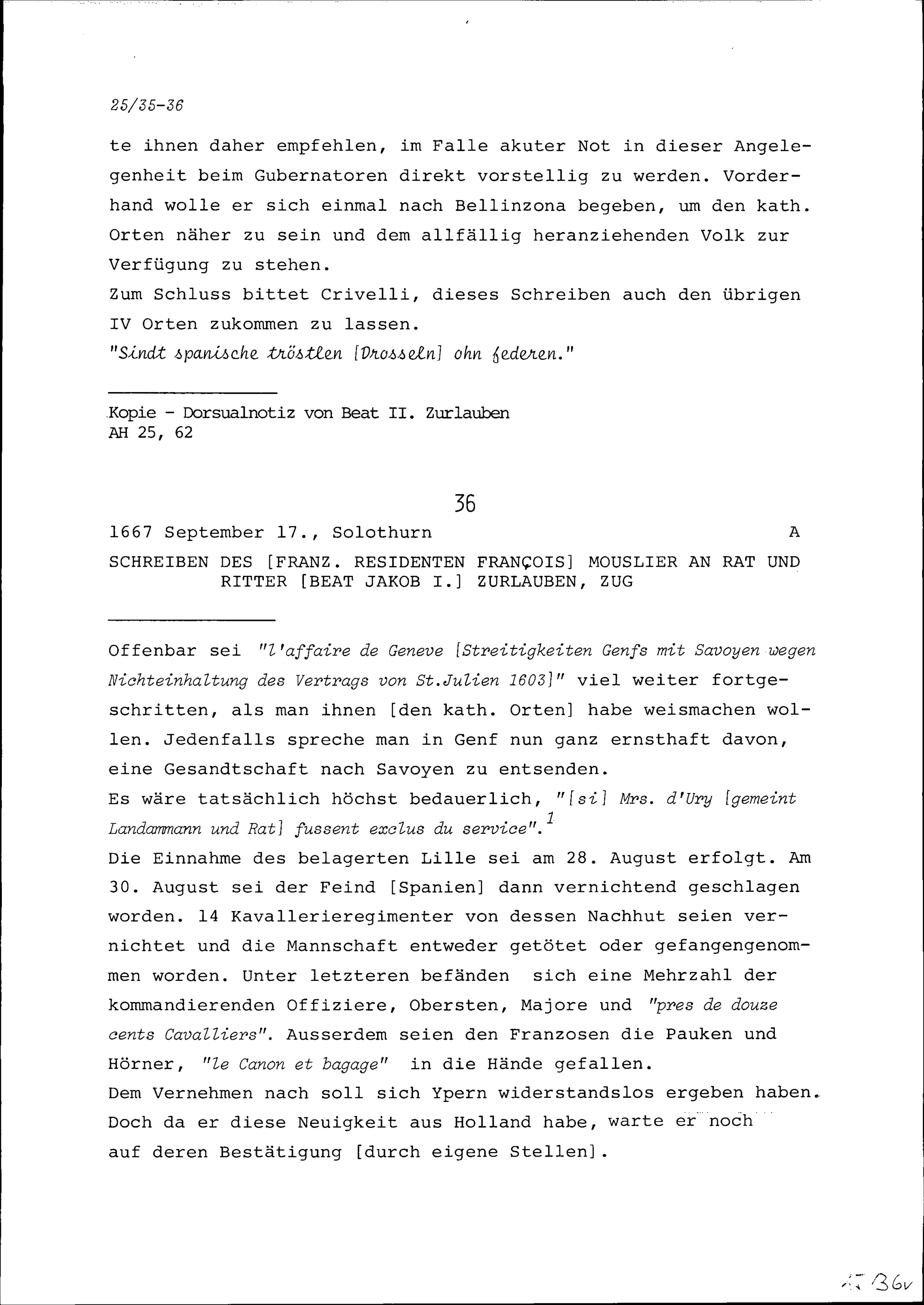 Schreiben von François Mouslier, Resident von Frankreich, an Beat Jakob I. Zurlauben, Rat, Zug