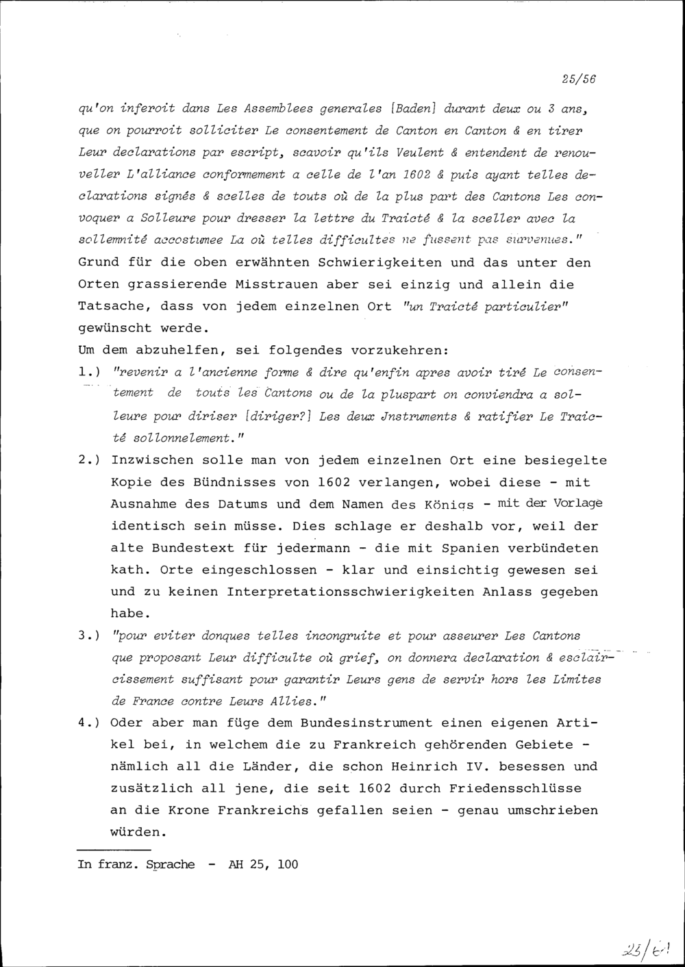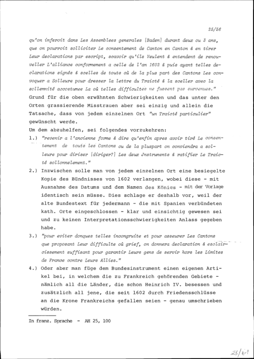 Notiz von Beat II. Zurlauben zum französischen Bündnis und dessen Erneuerung