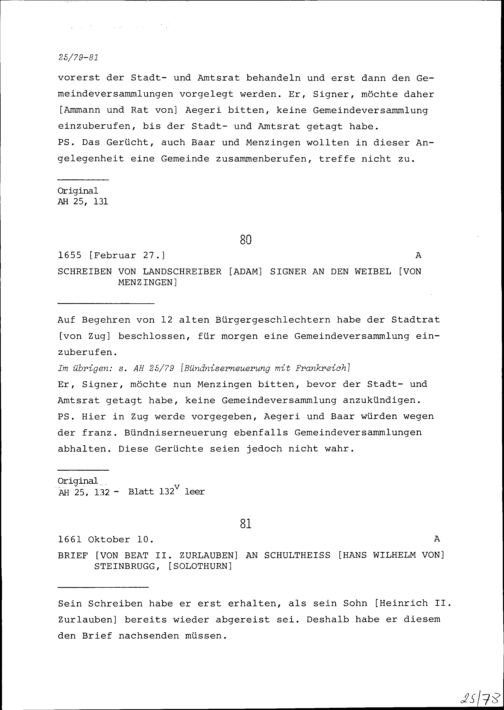 Schreiben von Adam Signer, Landschreiber, an den Weibel von Menzingen