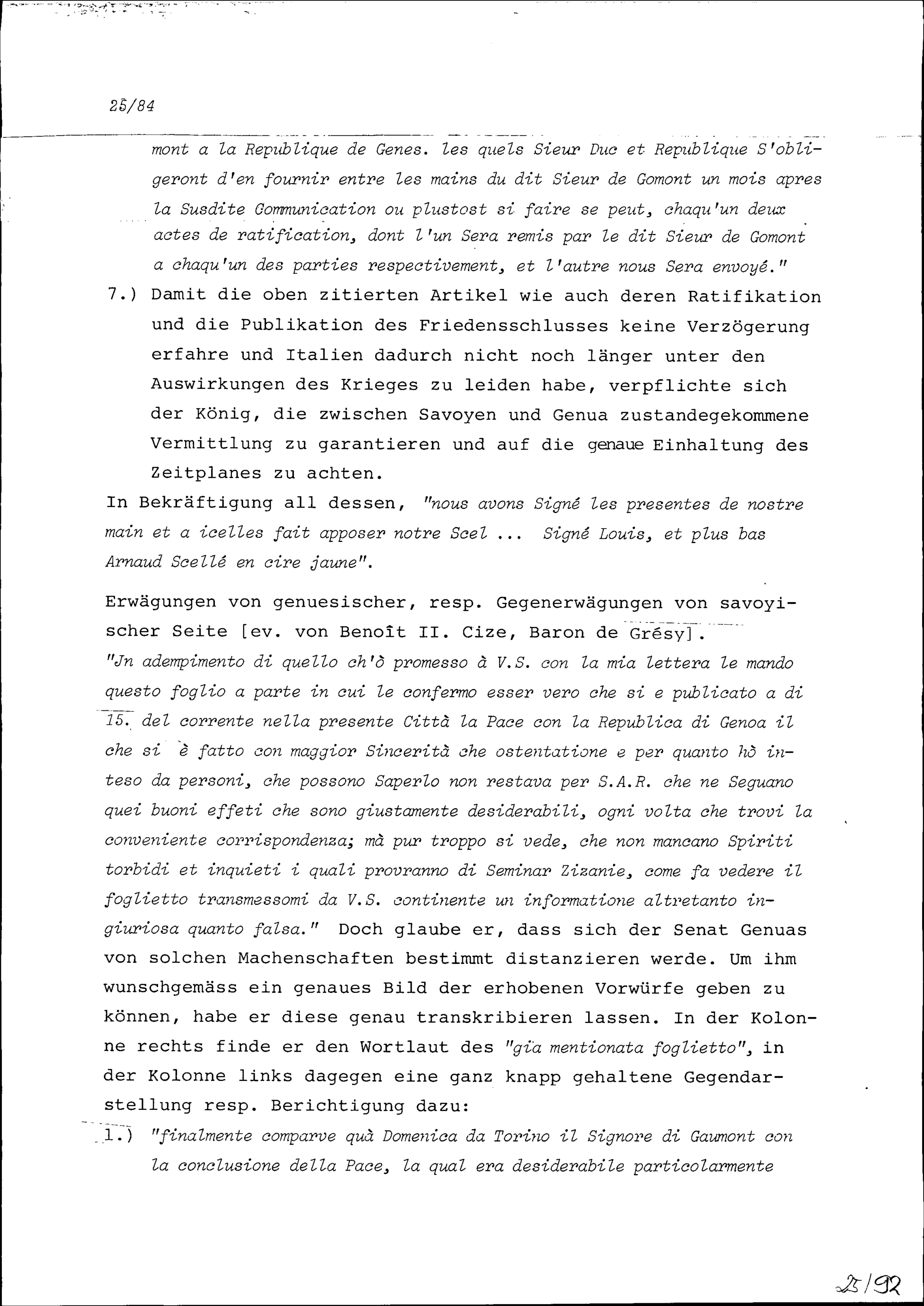 Vermittlung von Ludwig XIV., König von Frankreich, in den kriegerischen Auseinandersetzungen zwischen Savoyen und Genua