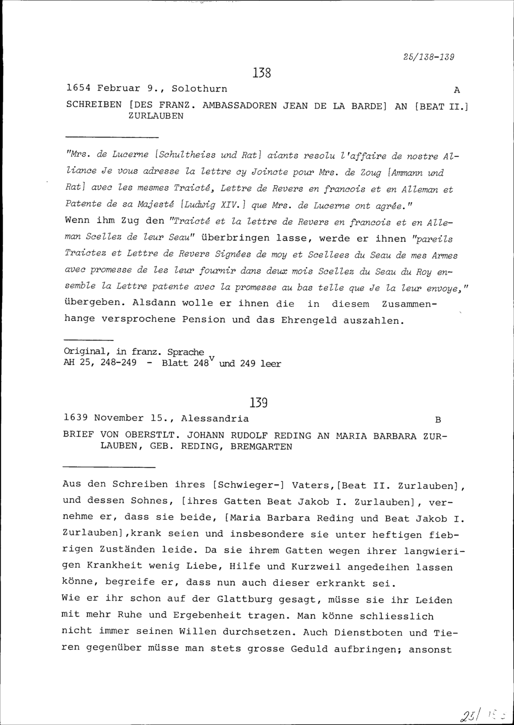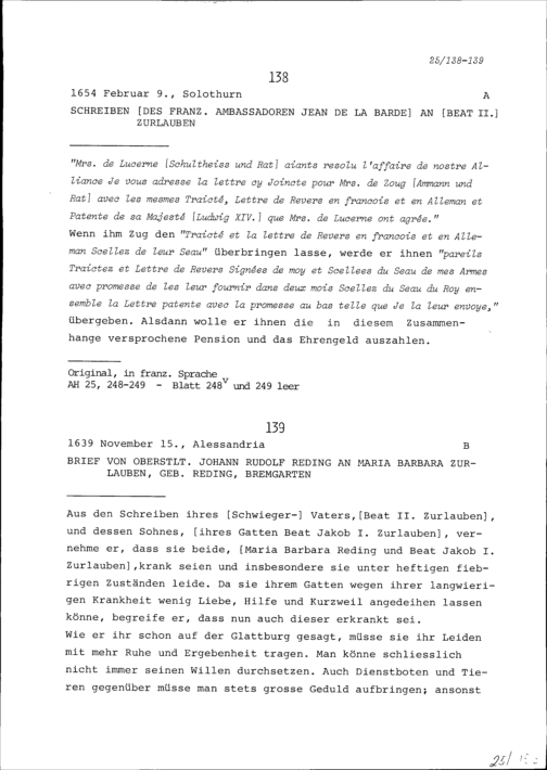 Schreiben von Jean de la Barde, Ambassador von Frankreich, an Beat II. Zurlauben