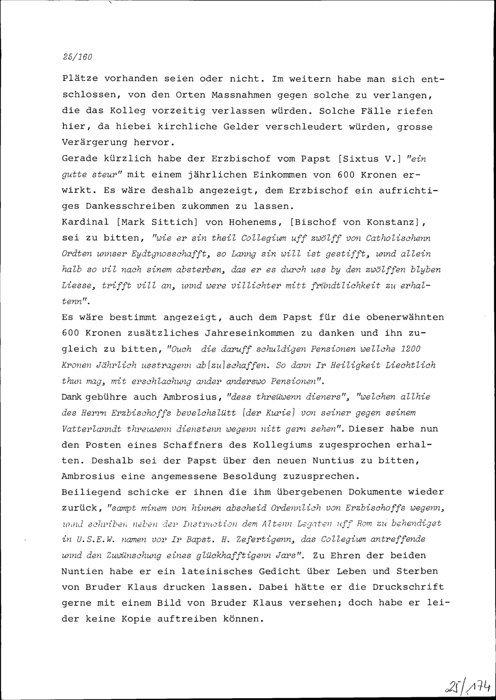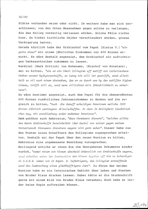 Schreiben von Sebastian von Beroldingen, Gesandter der Katholischen Orte nach Mailand, an die Katholischen Orte