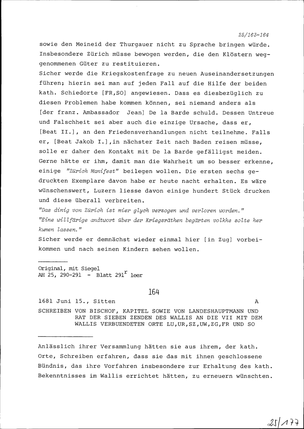 Schreiben des Bischofs, Kapitels sowie Landeshauptmanns und Rats der Sieben Zenden des Wallis an die Sieben mit dem Wallis verbündeten Orte Luzern, Uri, Schwyz, Unterwalden (Ob- und Nidwalden), Zug, Freiburg und Solothurn