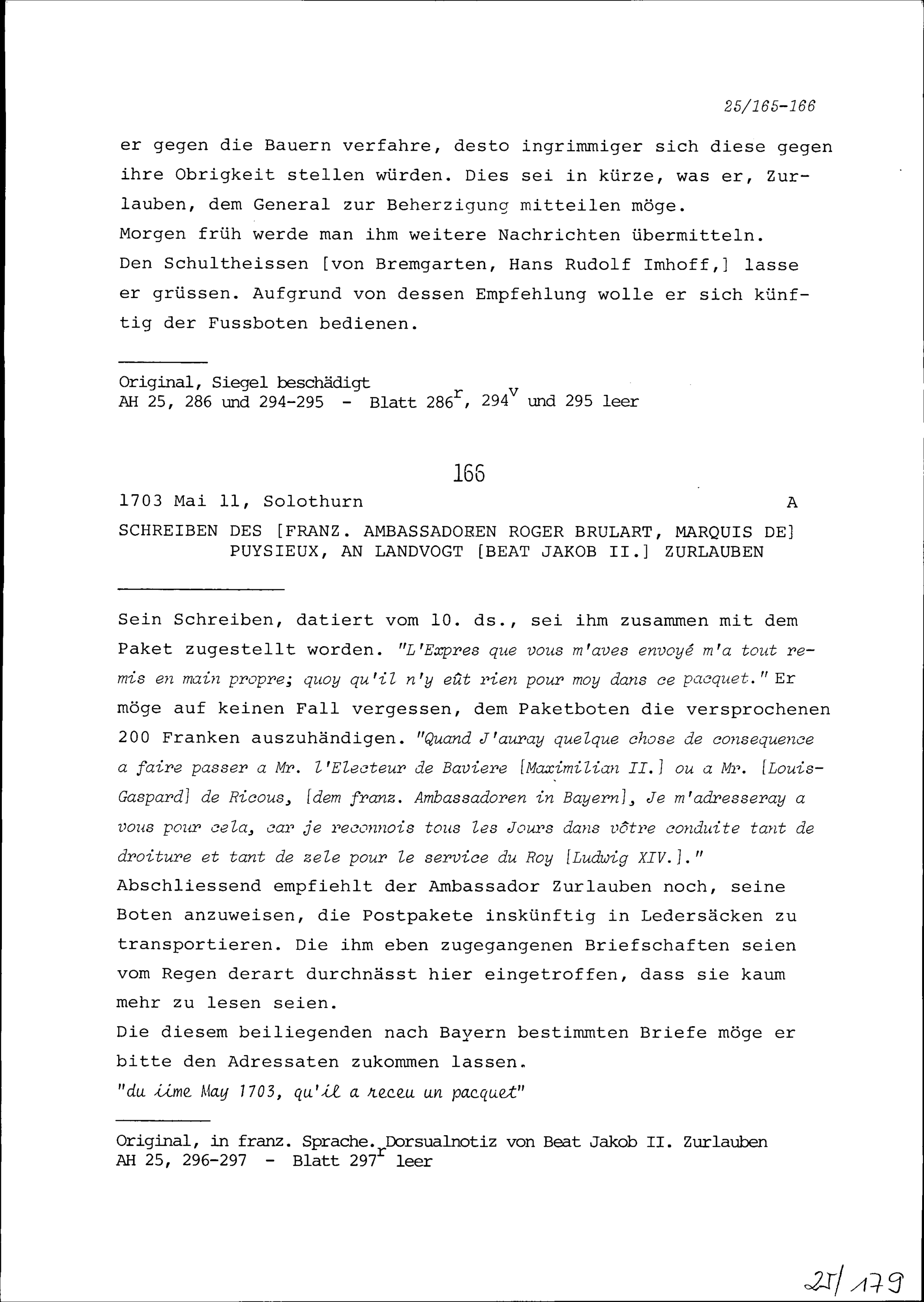 Schreiben von Roger Brûlart, Marquis de Puysieux, Ambassador von Frankreich, an Beat...