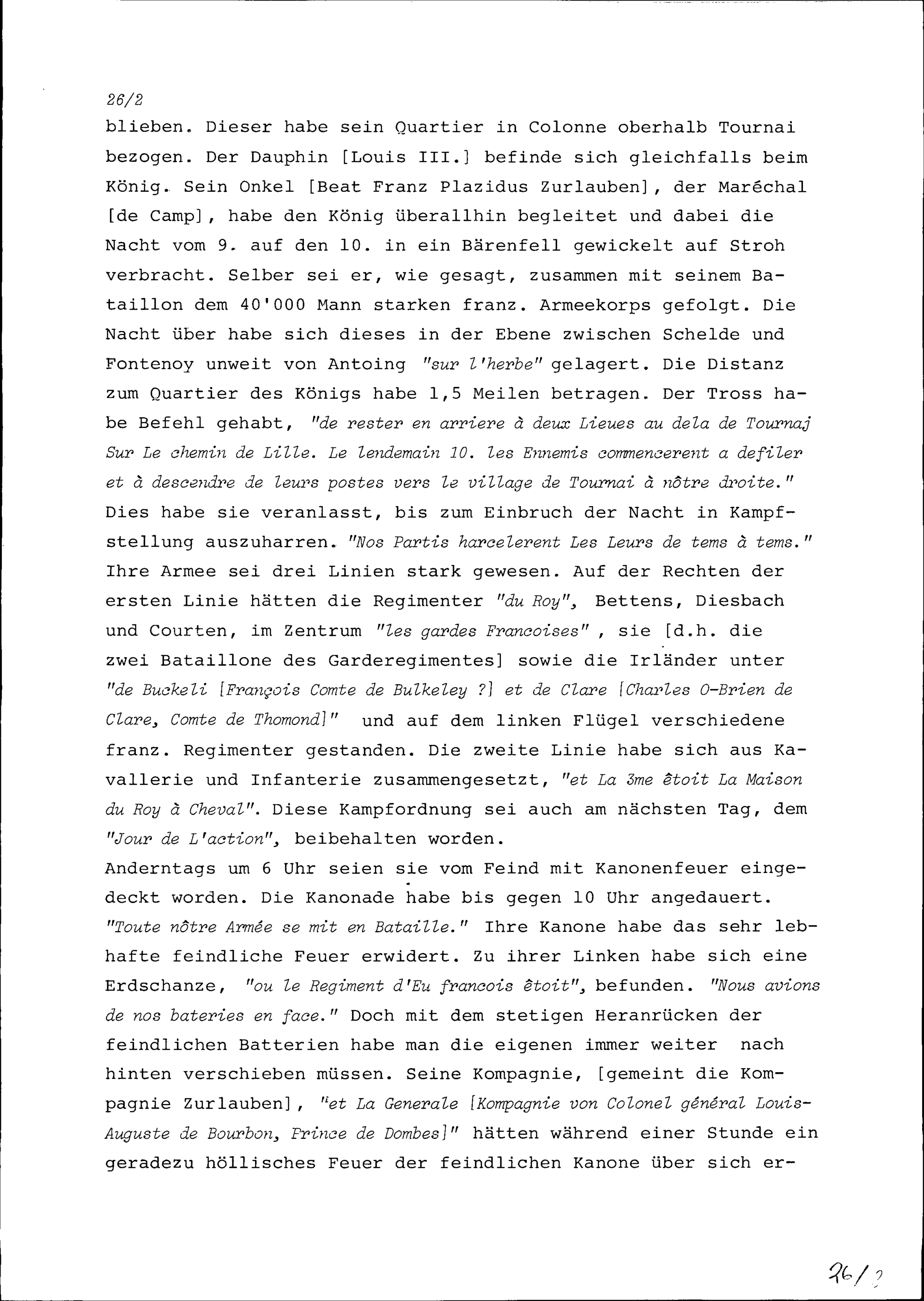 Schreiben von Beat Fidel Zurlauben, Gardehauptmann, an Beat Jakob Anton Zurlauben