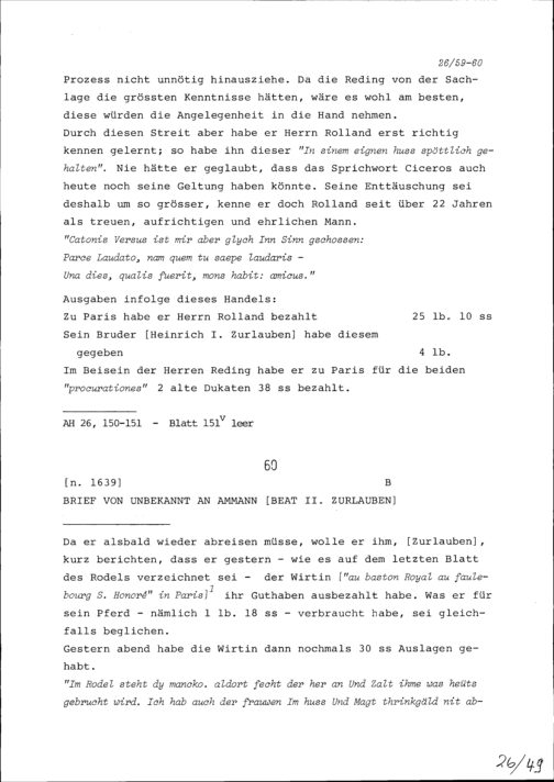 Schreiben von Unbekannt an Beat II. Zurlauben, Ammann