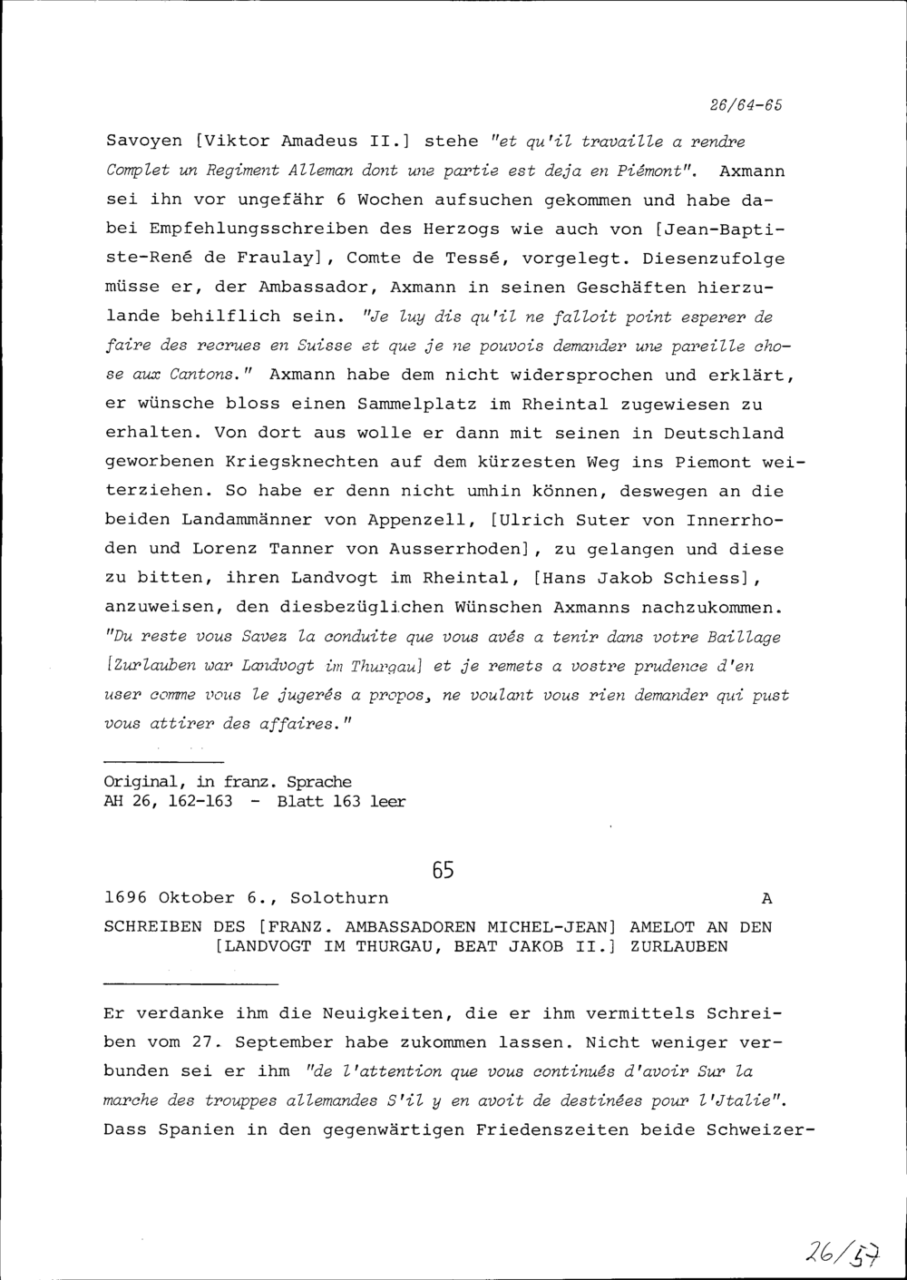 Schreiben von Michel-Jean Amelot, Ambassador von Frankreich, an Beat Jakob II. Zurlauben, Landvogt im Thurgau