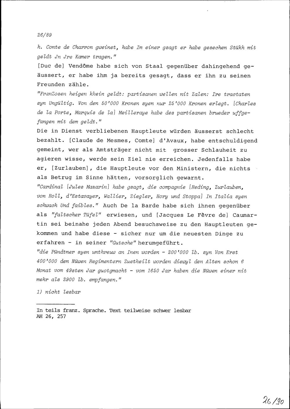 Notiz von Beat II. Zurlauben zur Gesandtschaft der Dreizehn Orte nach Frankreich, ausgeführt durch Rodolphe de Weck, durch Vinzenz Wagner, durch Hans Konrad Werdmüller und durch Johann Jakob vom Staal
