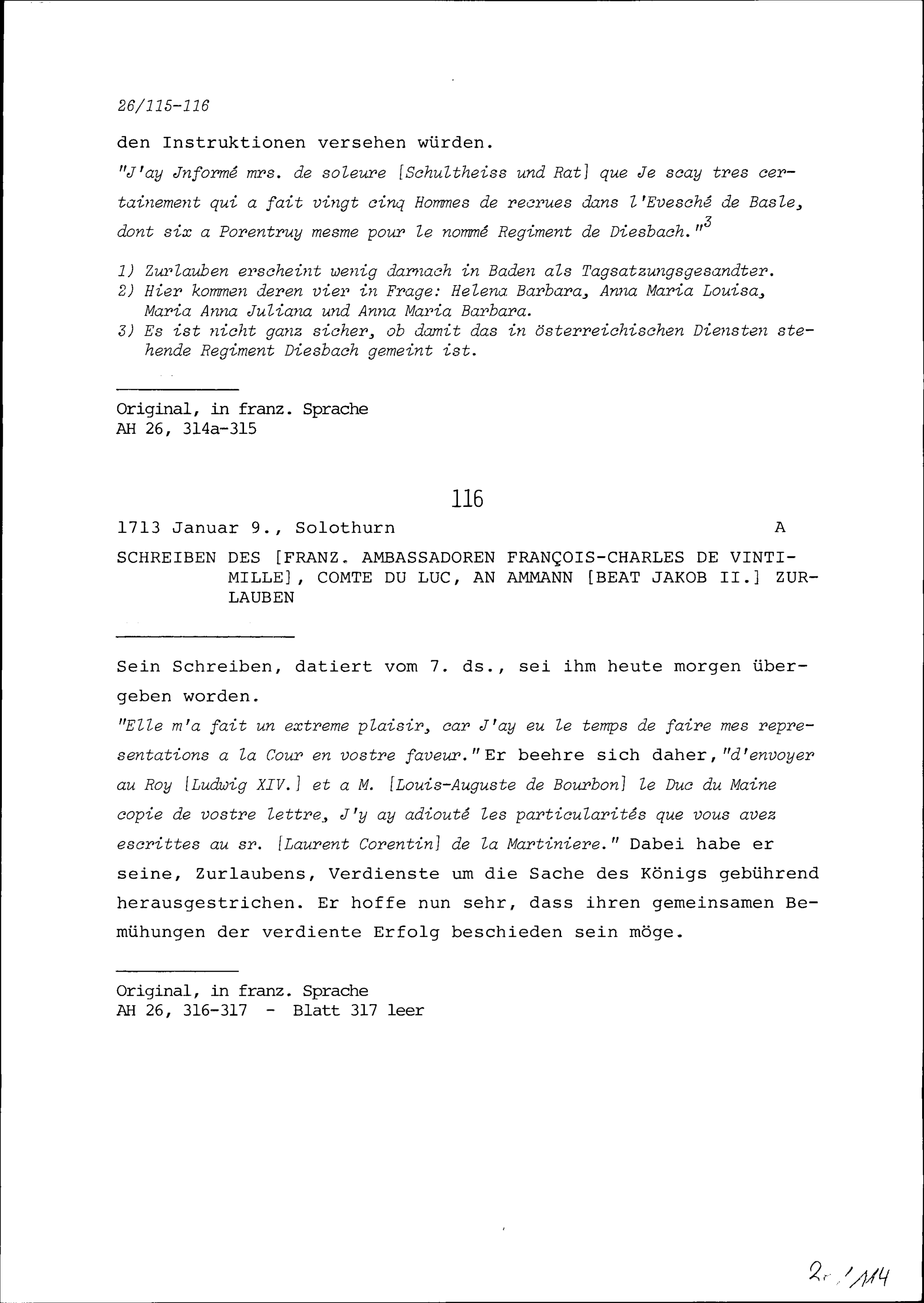 Schreiben von François-Charles de Vintimille, Graf du Luc, Ambassador von Frankreich, an Beat Jakob II. Zurlauben, Ammann