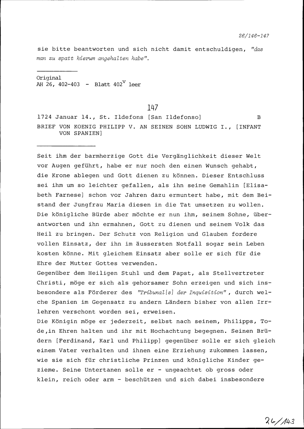 Schreiben von Philipp V., König, an Ludwig I., Infant von Spanien, seinen Sohn