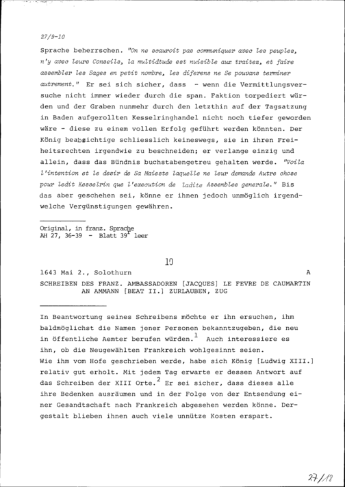 Schreiben von Jacques Le Fèvre de Caumartin, Ambassador von Frankreich, an Beat II....
