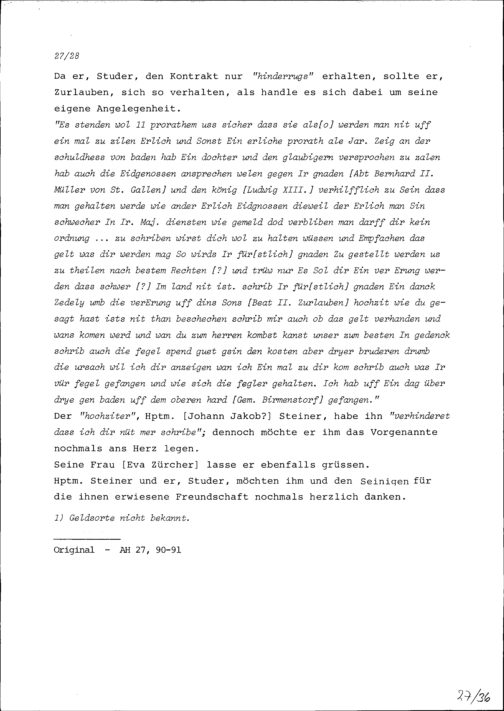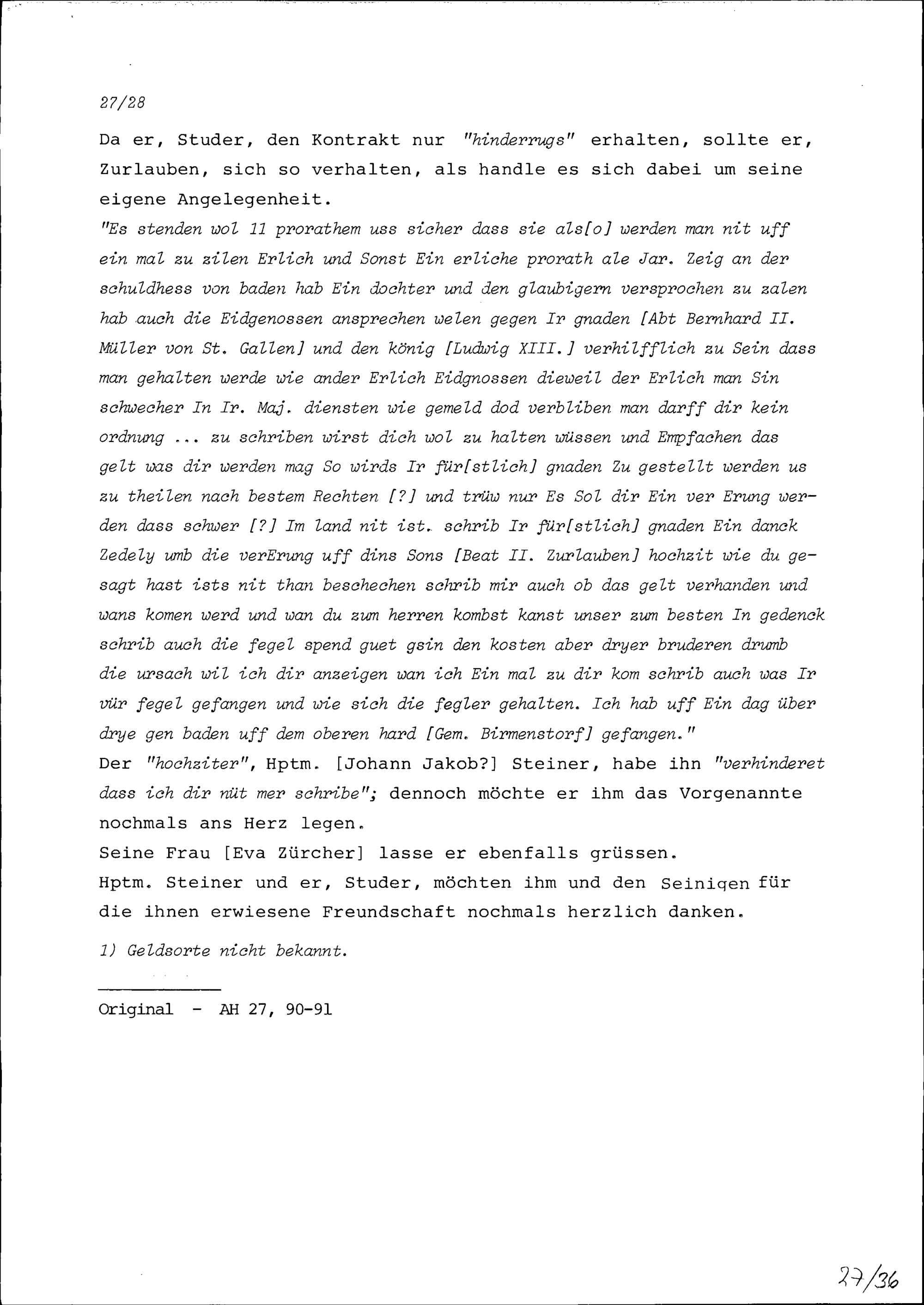 Schreiben von Josue Studer von Winkelbach zu Sulzberg, Hauptmann, an Konrad III. Zurlauben, Ammann