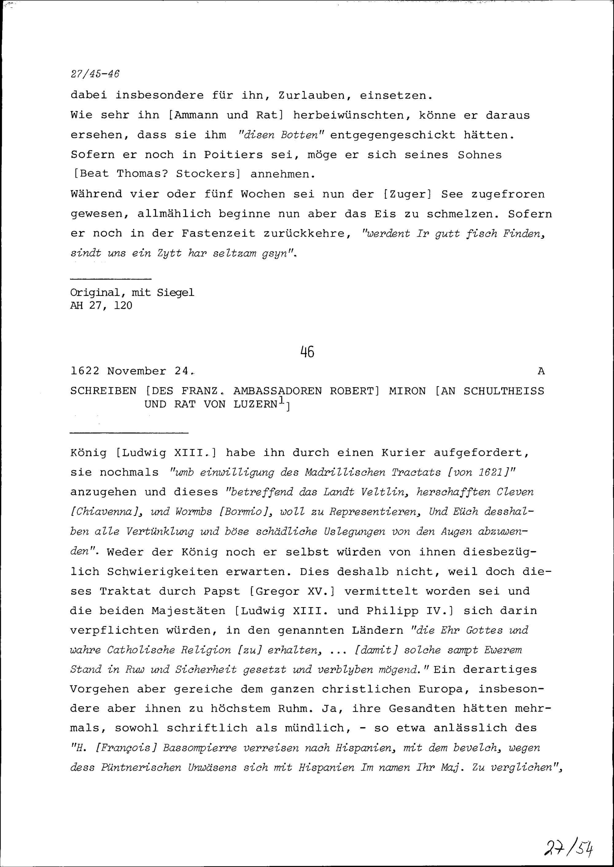 Schreiben von Robert Miron, Ambassador von Frankreich, an Schultheiss und Rat Luzern