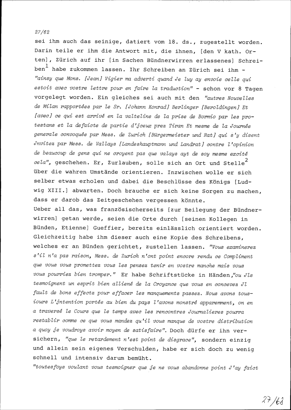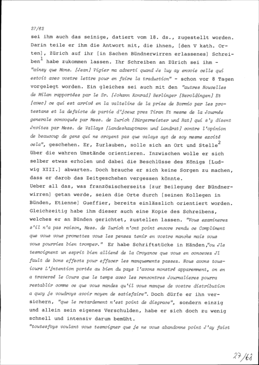 Schreiben von Robert Miron, Ambassador von Frankreich, an Konrad III. Zurlauben,...