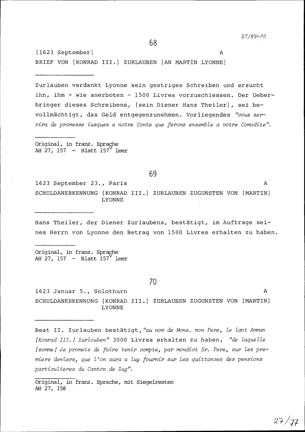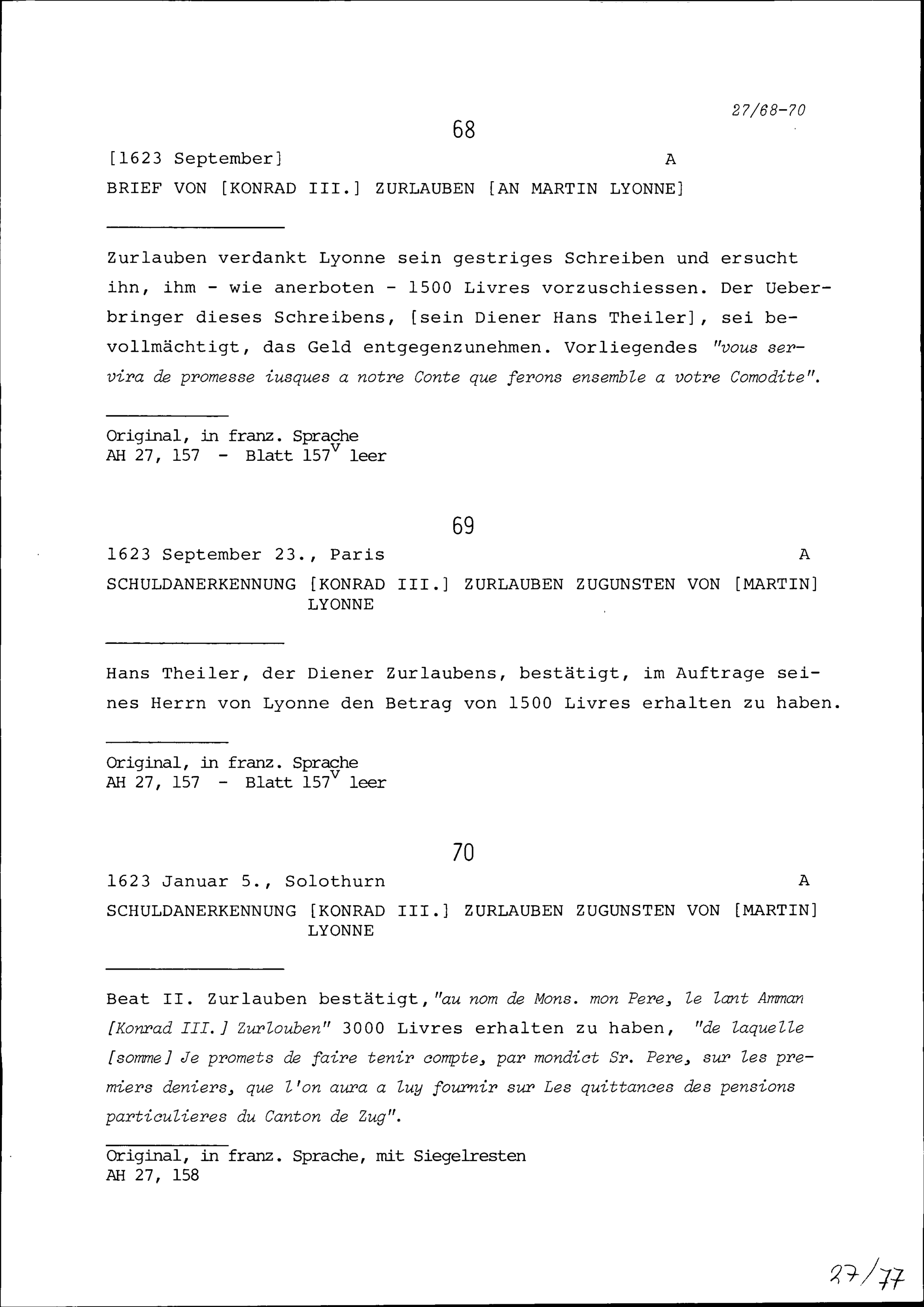 Schreiben von Konrad III. Zurlauben an Martin Lyonne