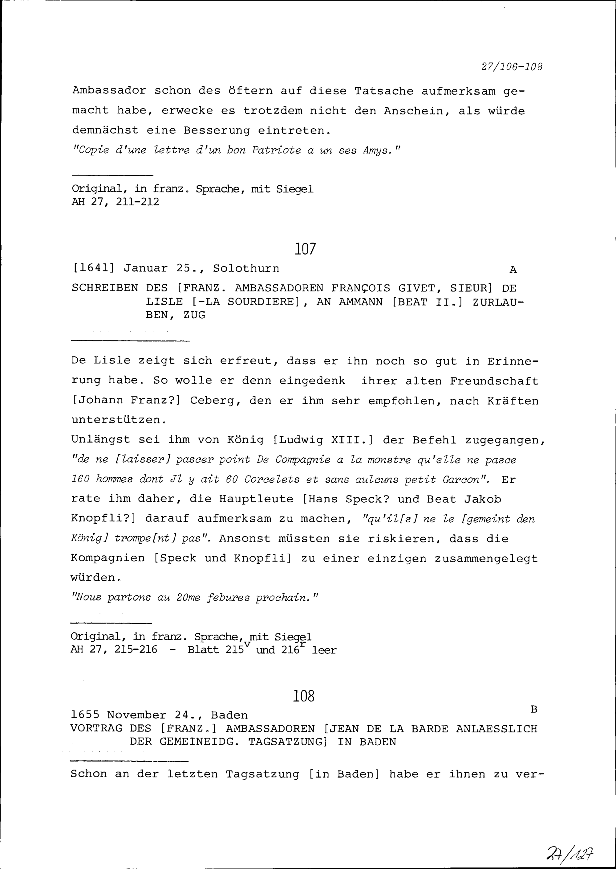 Schreiben von François Givet, Sieur de Lisle-la-Sourdière, Ambassador von Frankreich,...
