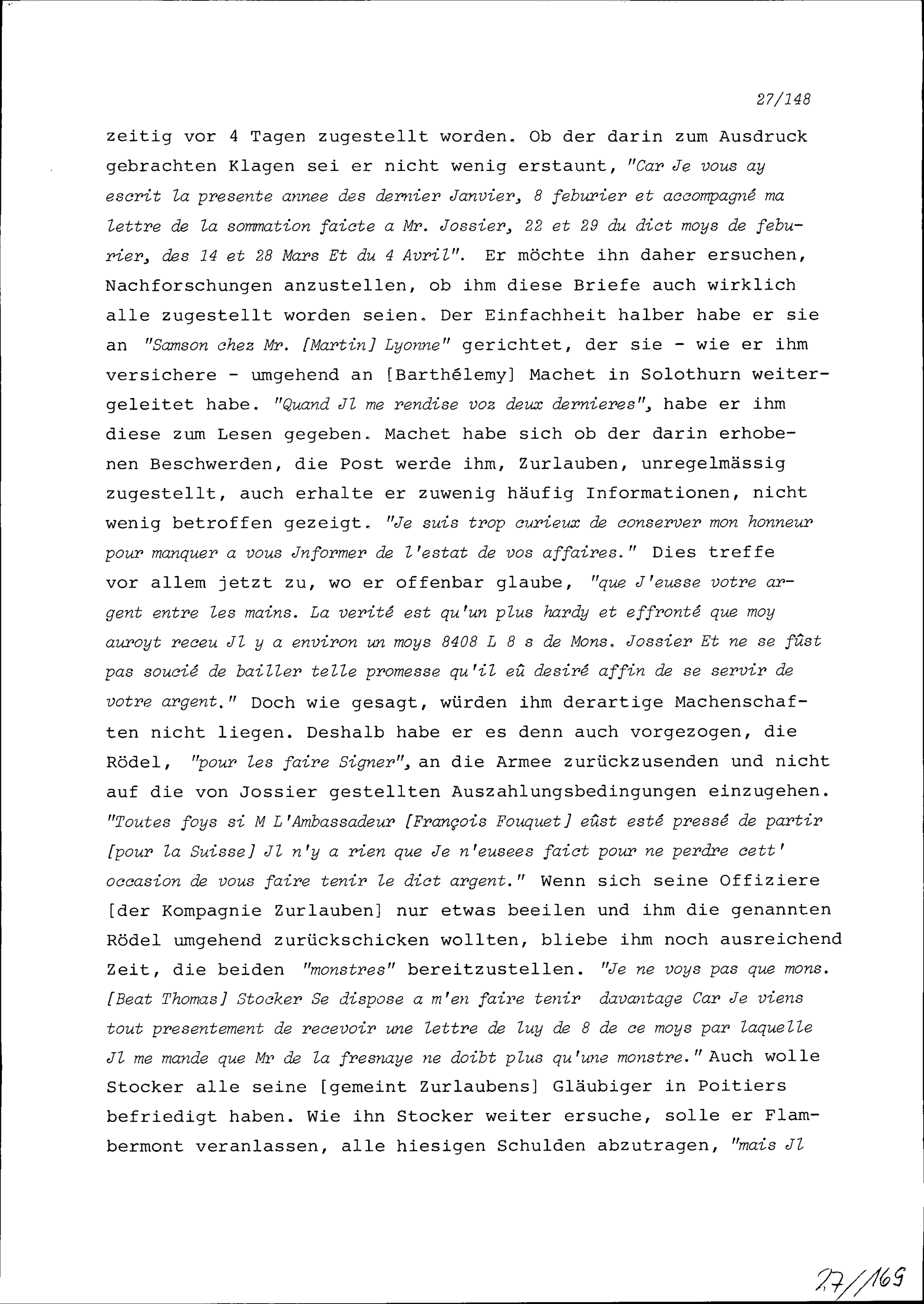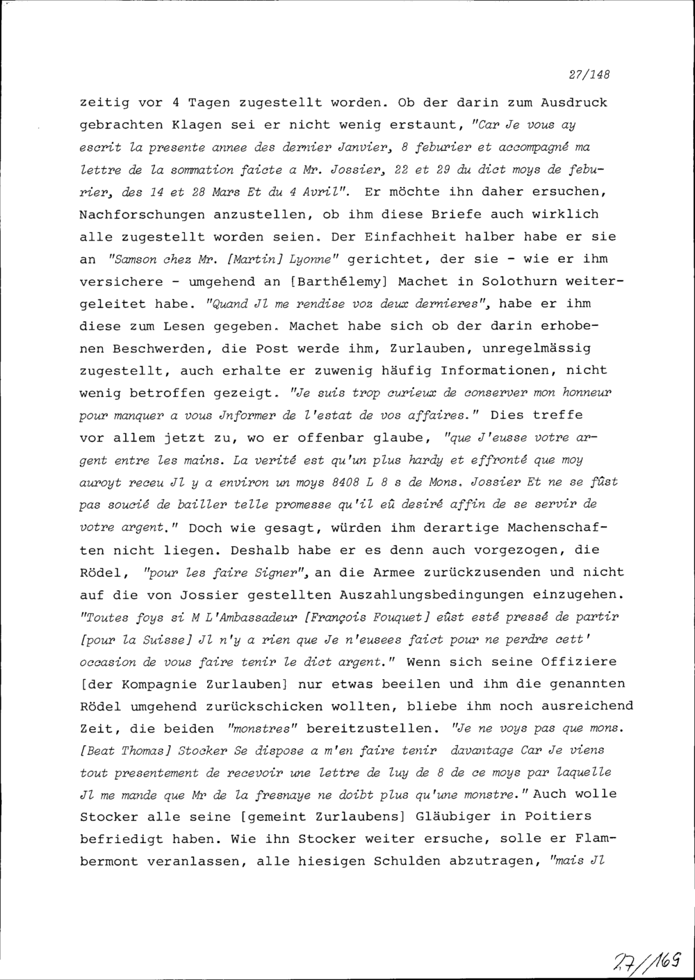 Schreiben von Barthélémy Rolland an Konrad III. Zurlauben, Ammann, Sankt Michaelsordensritter...