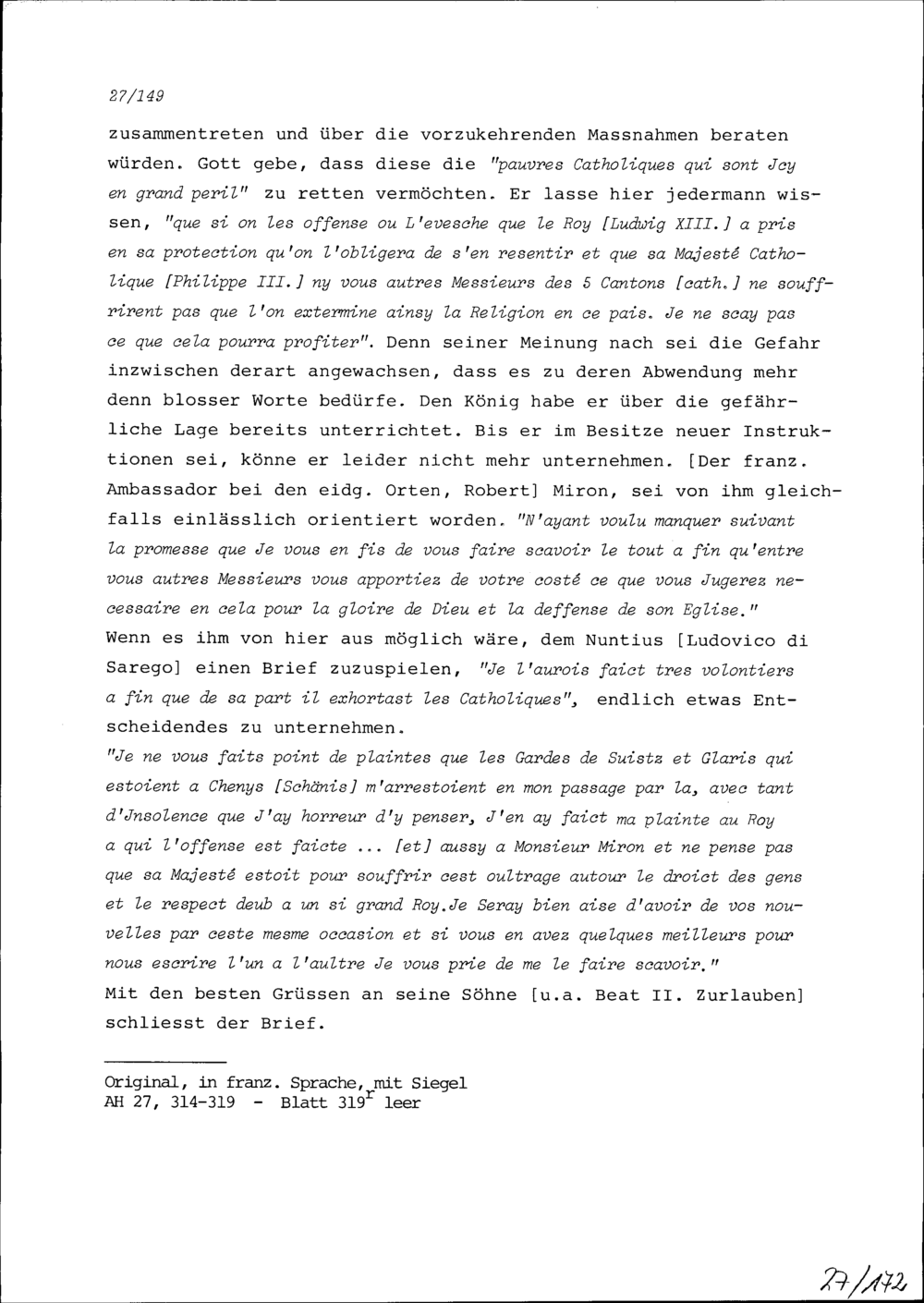 Schreiben von Etienne Gueffier, Ambassador von Frankreich in Bünden, an Konrad III....
