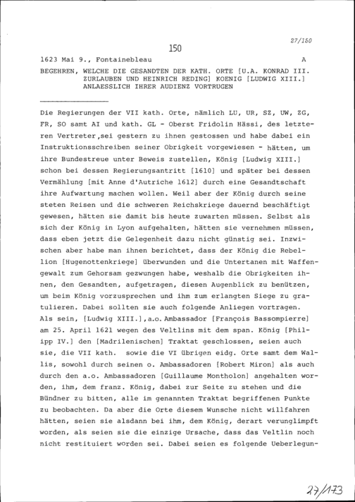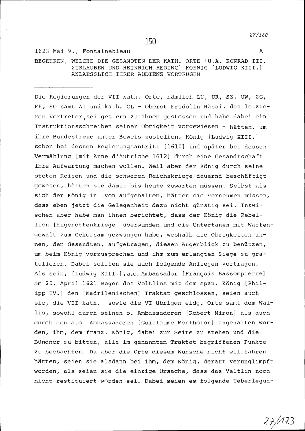 Begehren, welche Konrad III. Zurlauben und Heinrich Reding, Gesandte der Katholischen Orte, Ludwig XIII., König von Frankreich, anlässlich ihrer Audienz vortrugen