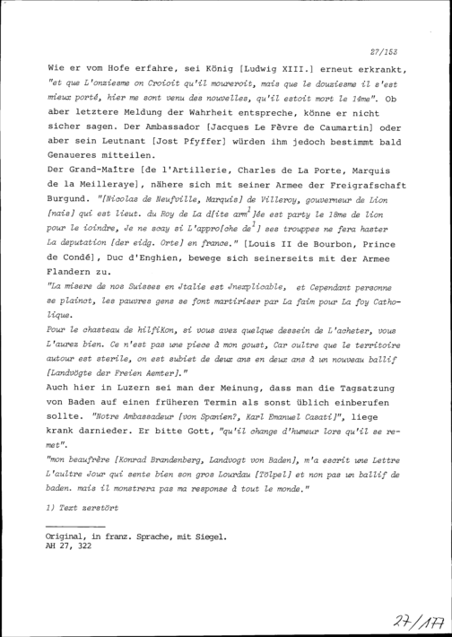 Schreiben von Alfons von Sonnenberg an Beat II. Zurlauben, Ammann, Zug