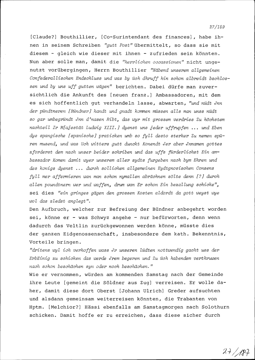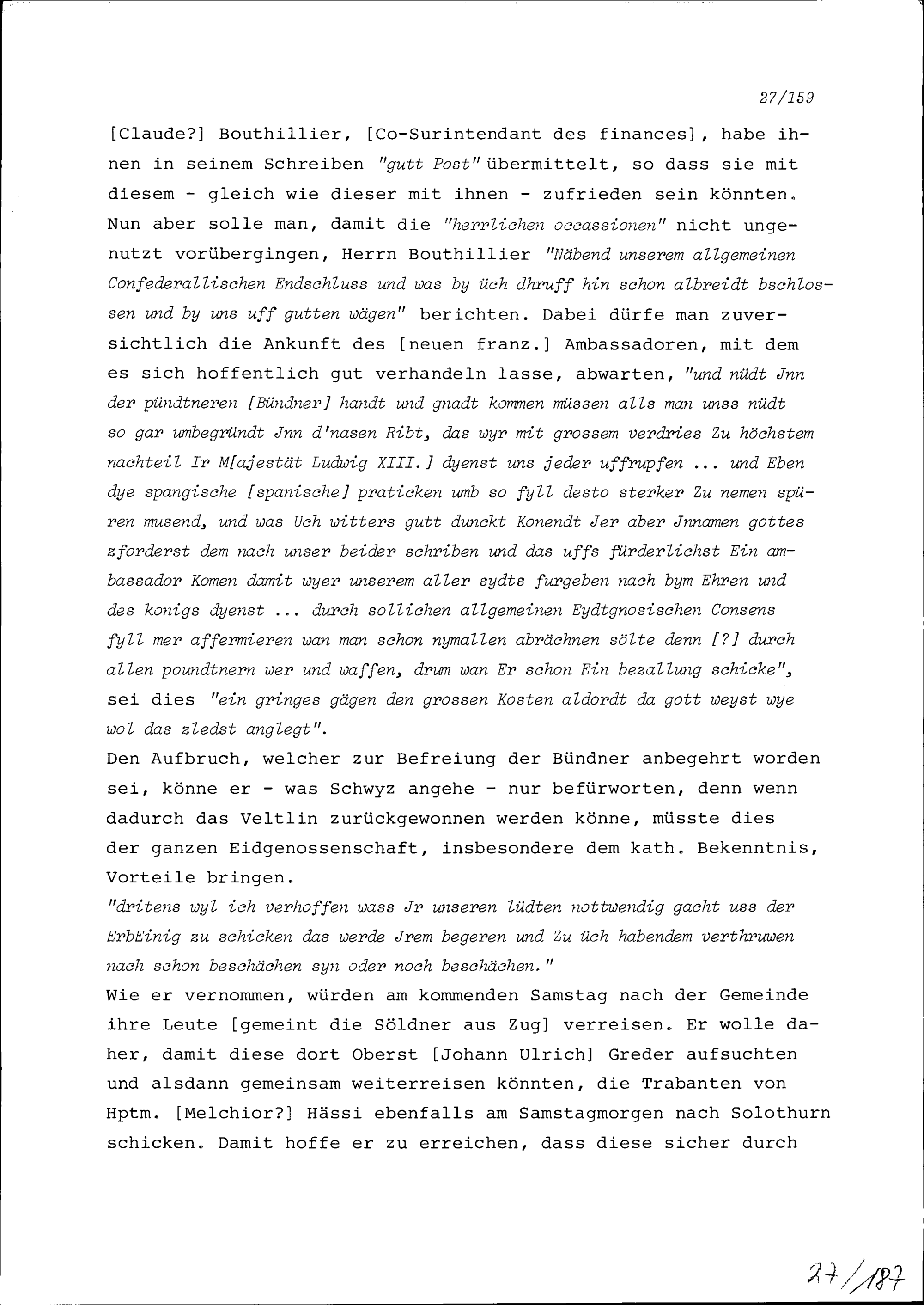Schreiben von Heinrich Reding an Beat II. Zurlauben, Hauptmann