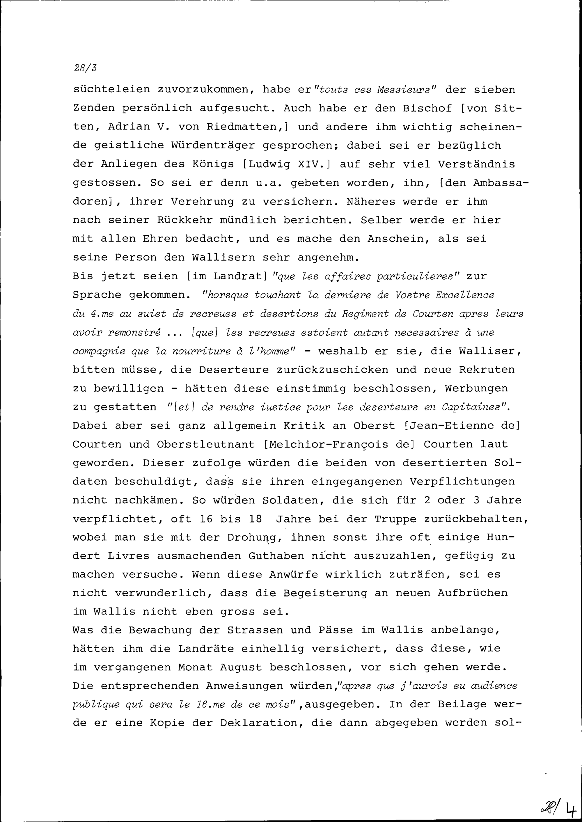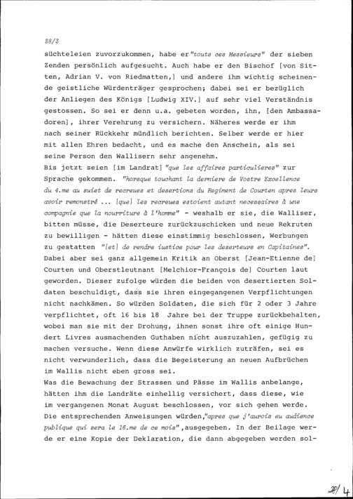 Schreiben von Beat Kaspar Zurlauben, ausserordentlicher Ambassador von Frankreich im Wallis, an Michel-Jean Amelot, Ambassador von Frankreich bei den Eidgenössischen Orten