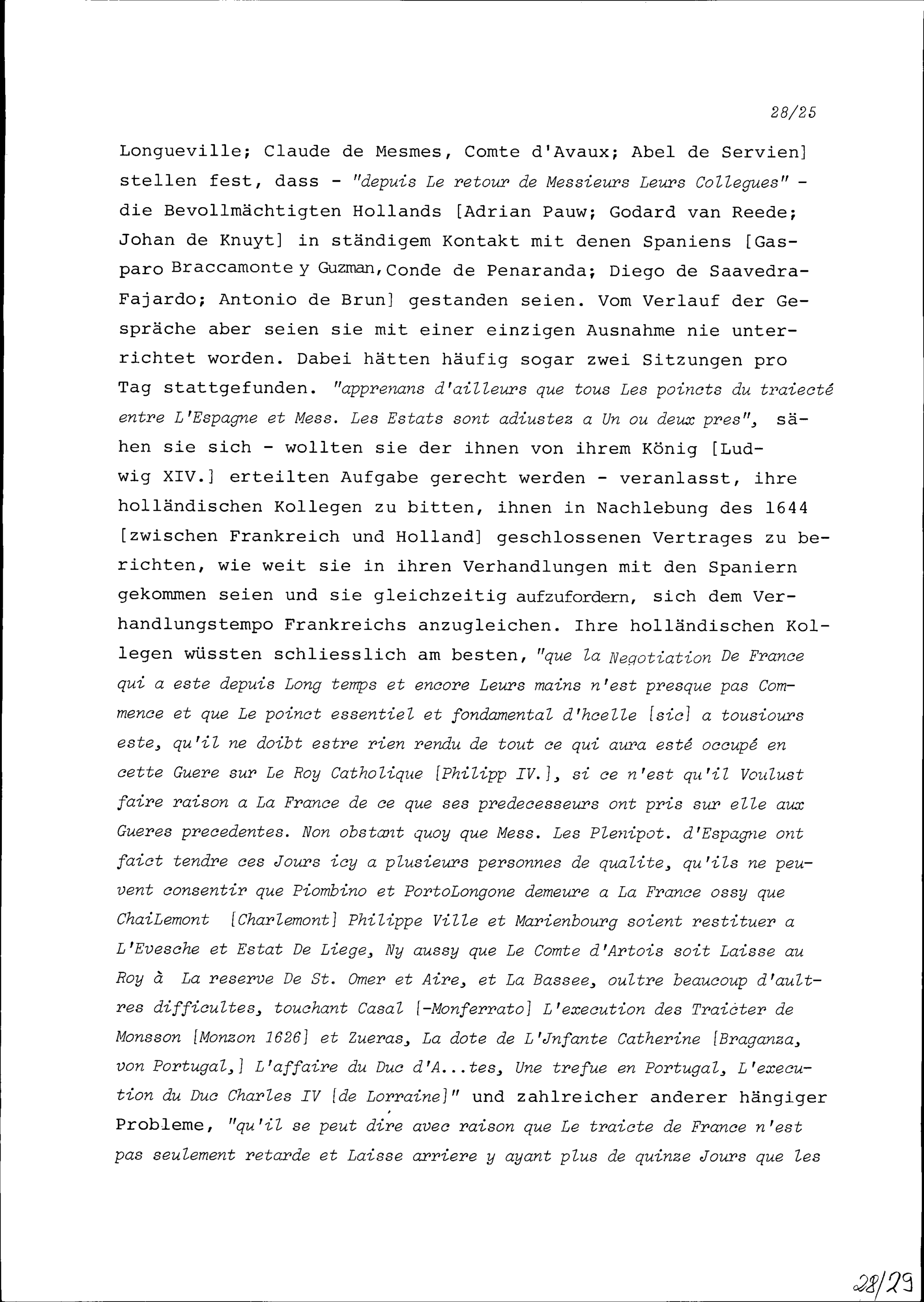 Stellungnahme der französischen Bevollmächtigten zu den Bestrebungen ihrer holländischen Kollegen, mit Spanien möglichst rasch zu einem Vertragsabschluss zu gelangen