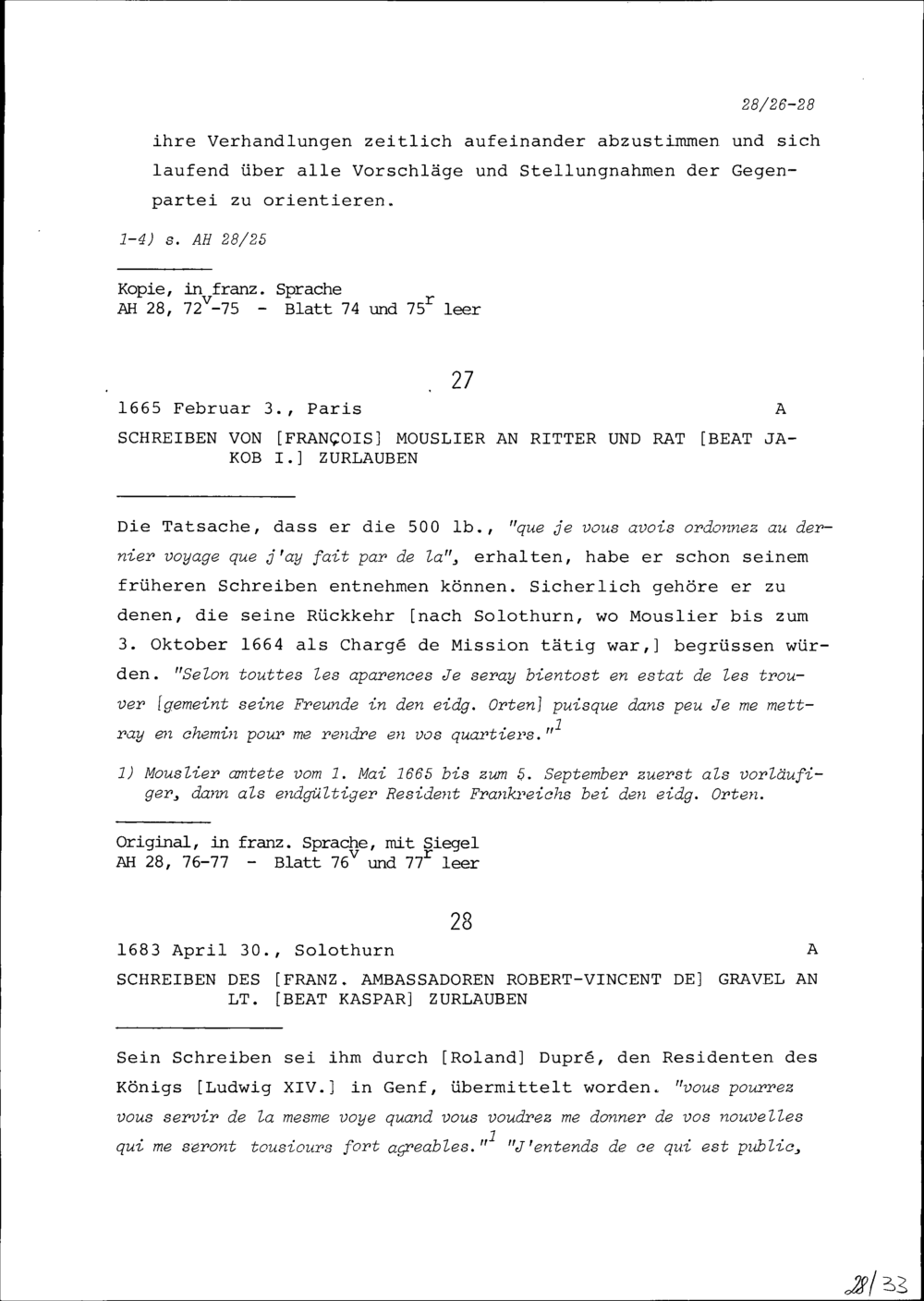 Schreiben von François Mouslier an Beat Jakob I. Zurlauben, Rat