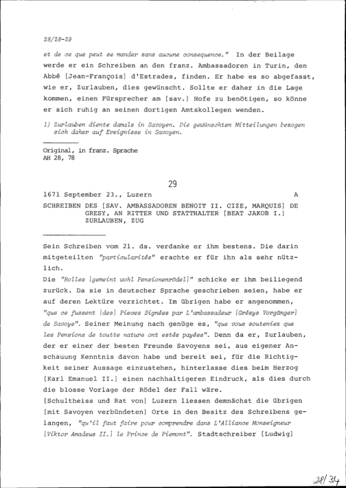Schreiben von Benoît II. Cize, Marquis de Grésy, Ambassador von Savoyen, an Beat...