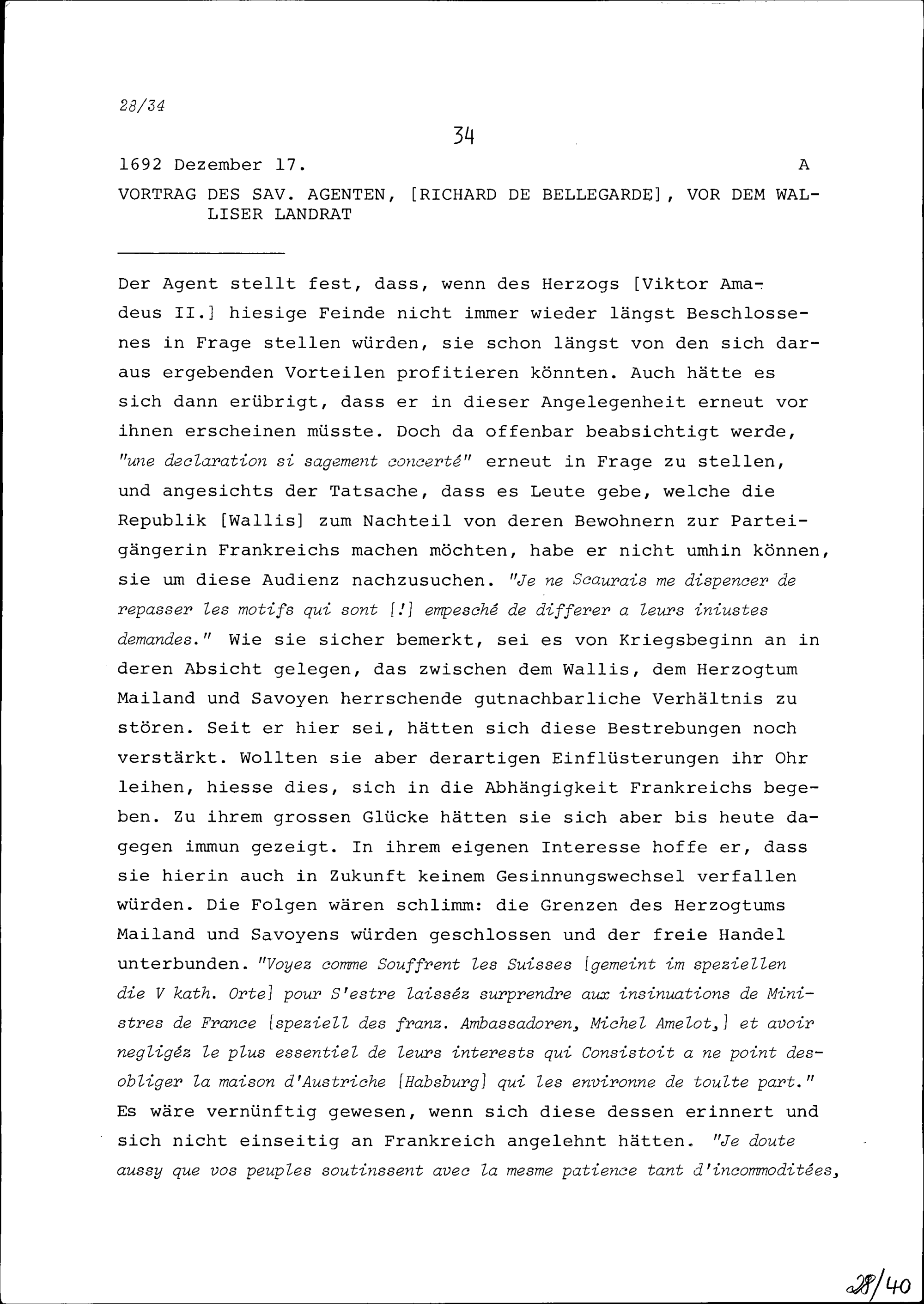 Vortrag von Richard de Bellegarde, Agent von Savoyen, vor dem Walliser Landrat