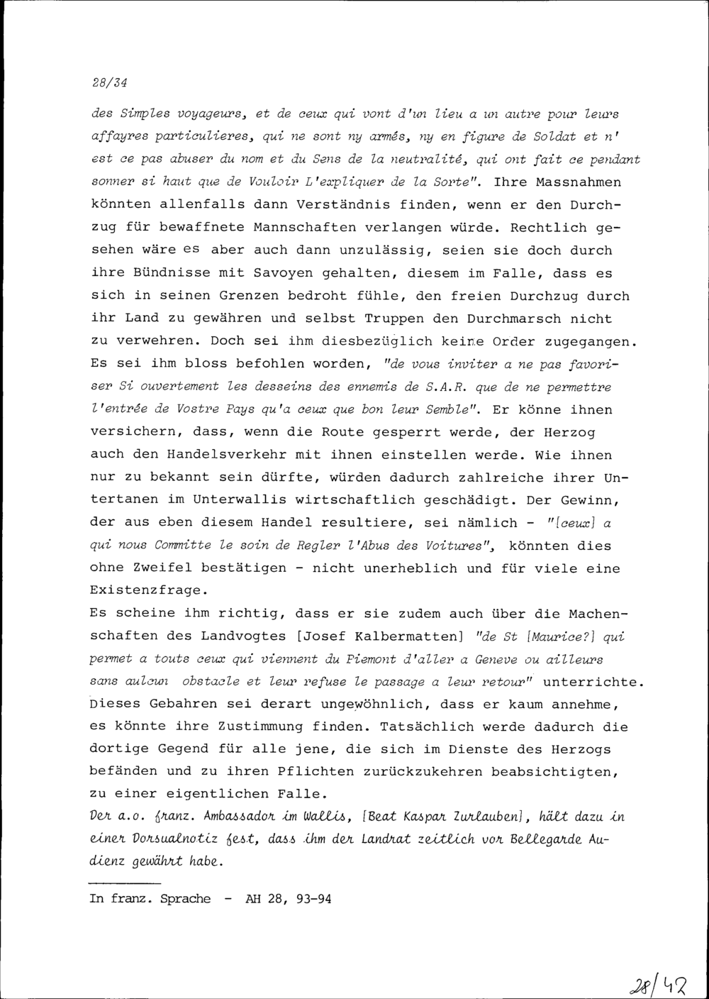 Vortrag von Richard de Bellegarde, Agent von Savoyen, vor dem Walliser Landrat