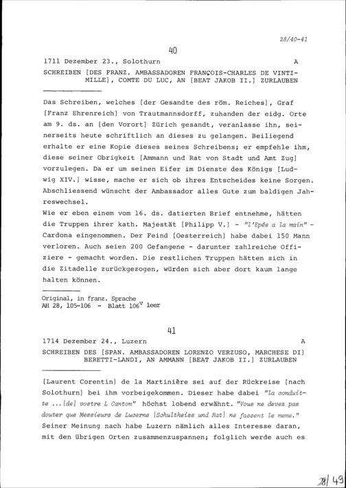 Schreiben von François-Charles de Vintimille, Graf du Luc, Ambassador von Frankreich, an Beat Jakob II. Zurlauben
