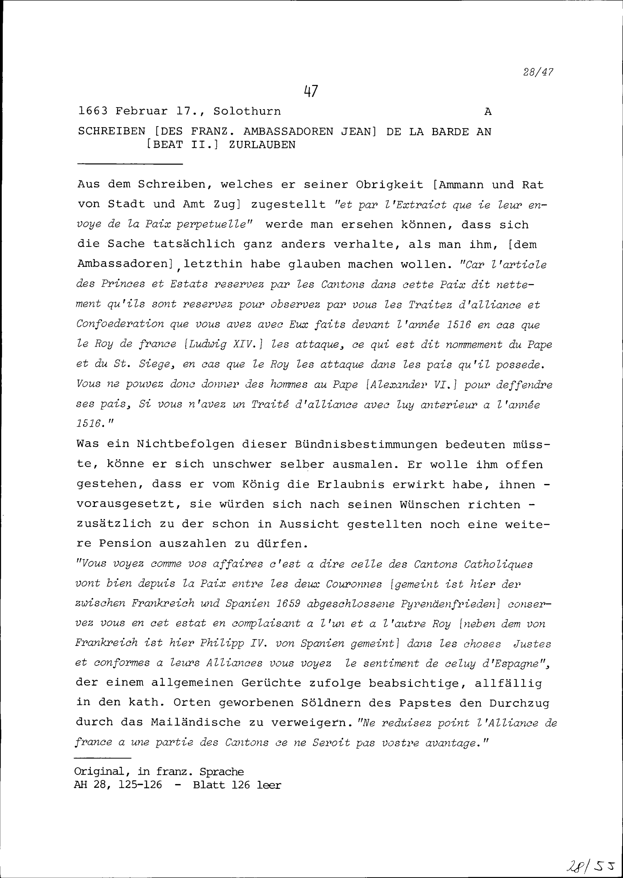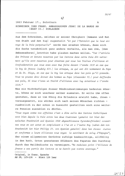 Schreiben von Jean de la Barde, Ambassador von Frankreich, an Beat II. Zurlauben