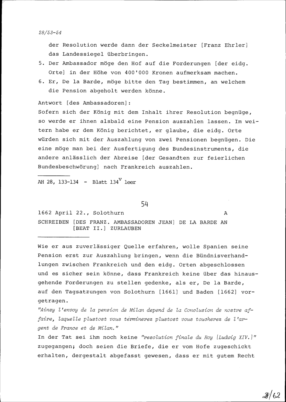 Schreiben von Jean de la Barde, Ambassador von Frankreich, an Beat II. Zurlauben