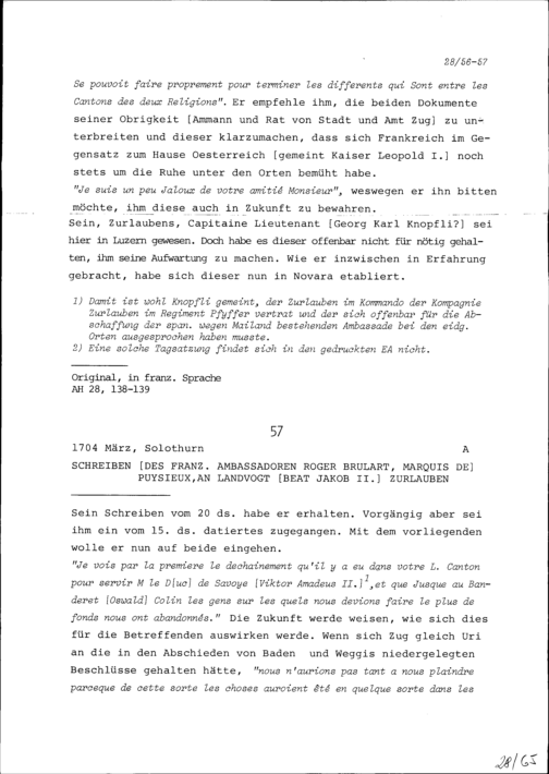 Schreiben von Roger Brûlart, Marquis de Puysieux, Ambassador von Frankreich, an Beat Jakob II. Zurlauben, Landvogt