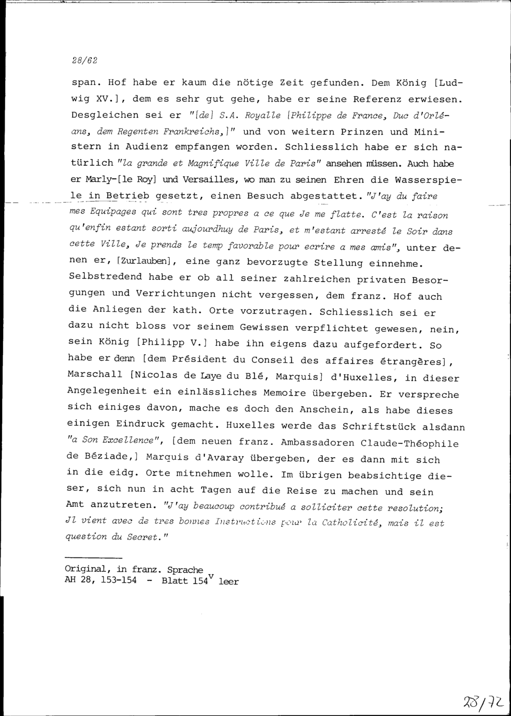 Schreiben von Lorenzo Verzuso, Marchese di Beretti-Landi, Ambassador von Spanien, an Beat Jakob II. Zurlauben