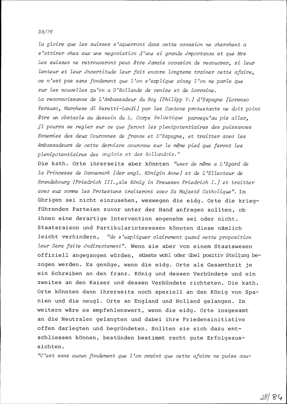Schreiben der französischen Ambassade an Beat Jakob II. Zurlauben, Ammann