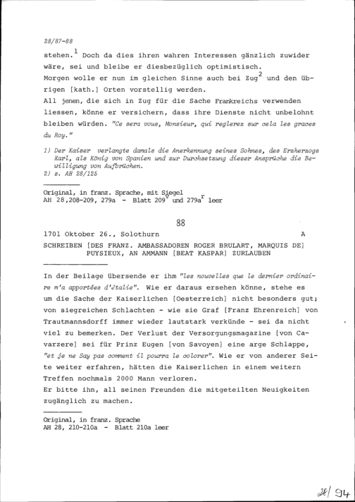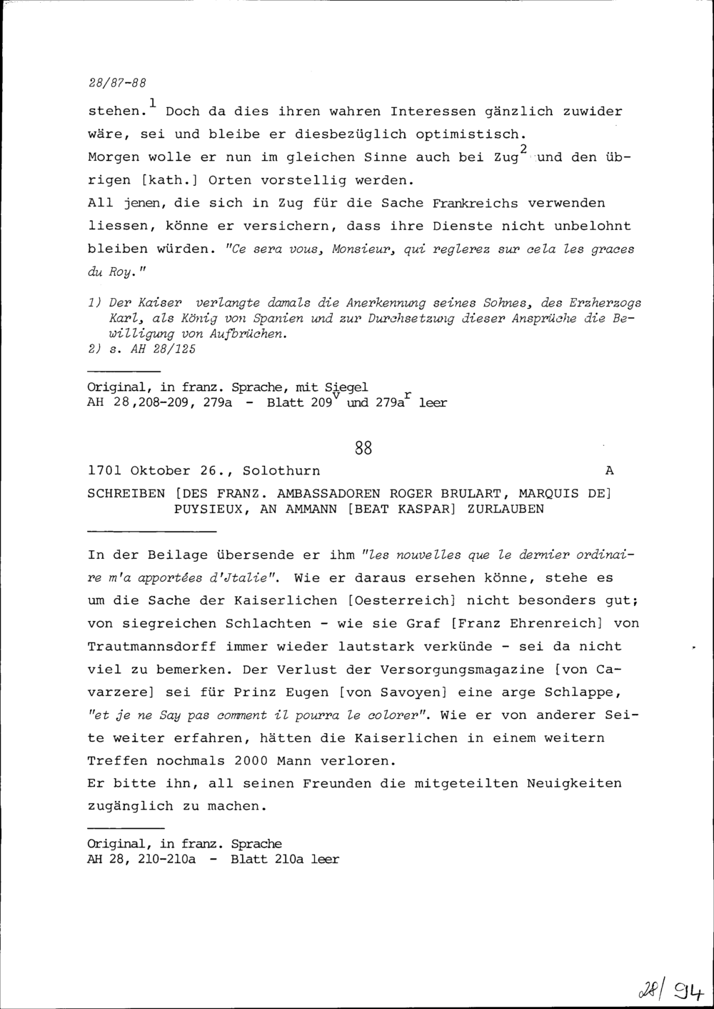 Schreiben von Roger Brûlart, Marquis de Puysieux, Ambassador von Frankreich, an Beat...