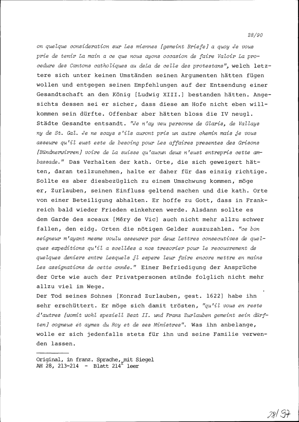 Schreiben von Robert Miron, Ambassador von Frankreich, an Konrad III. Zurlauben,...