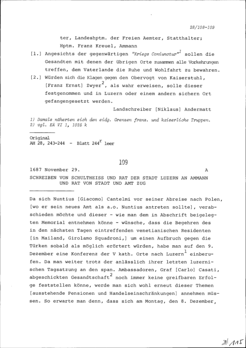 Schreiben des Schultheiss und Rats der Stadt Luzern an Ammann und Rat von Stadt und...