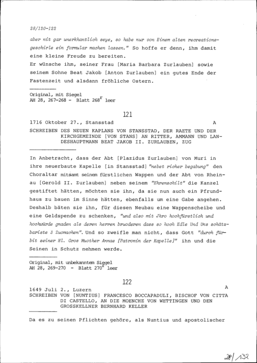 Schreiben des neuen Kaplans von Stansstad, der Räte und der Kirchgemeinde von Stans...