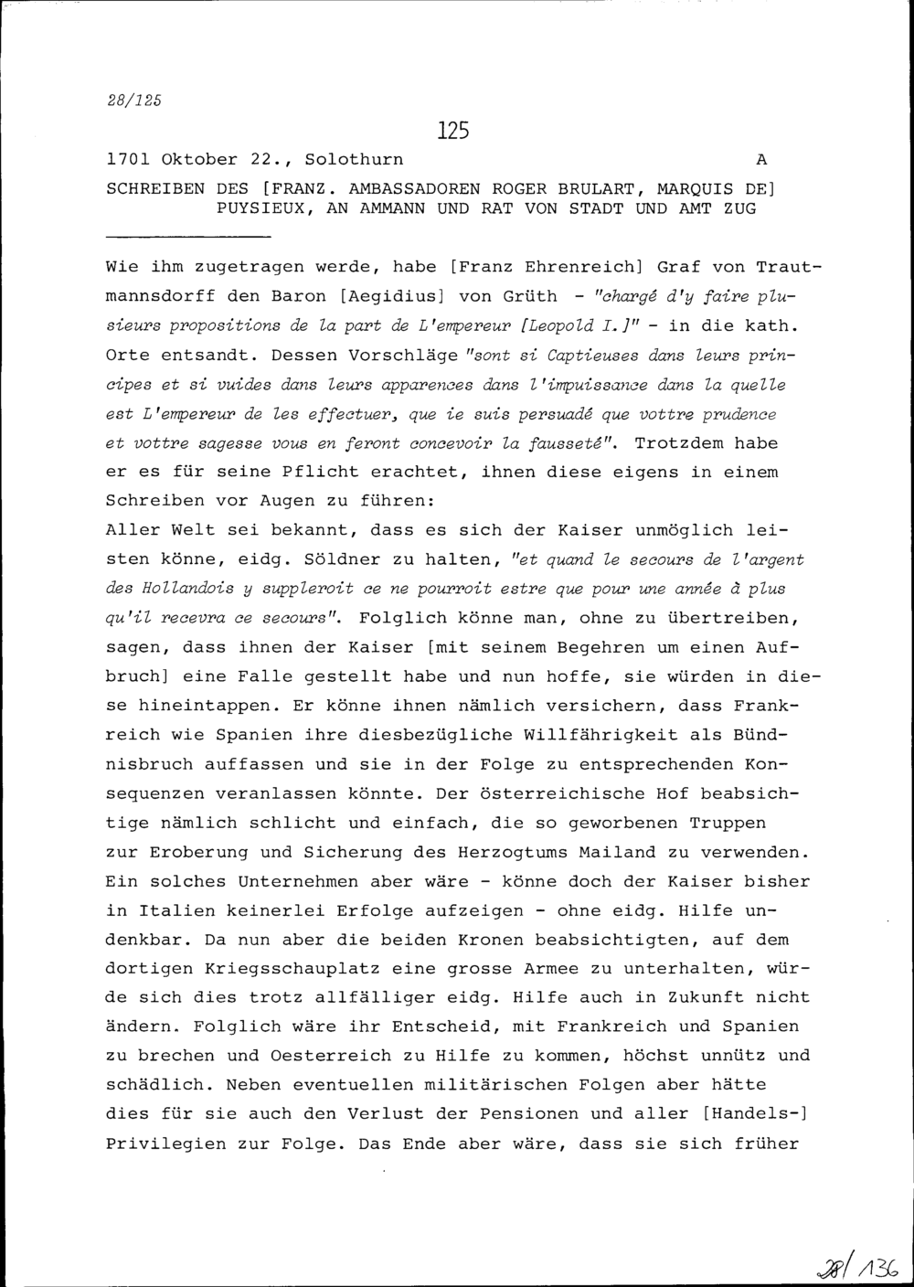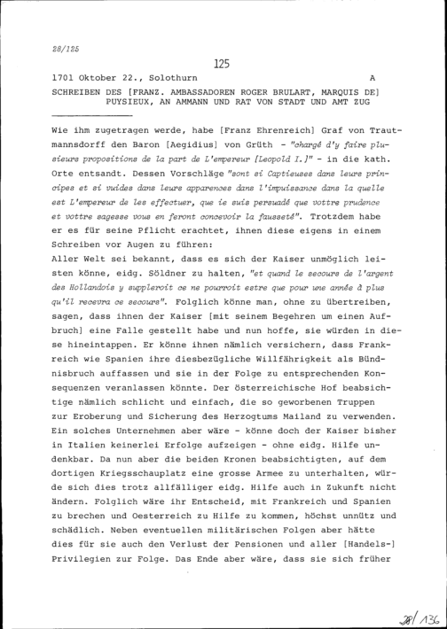 Schreiben von Roger Brûlart, Marquis de Puysieux, Ambassador von Frankreich, an Ammann...