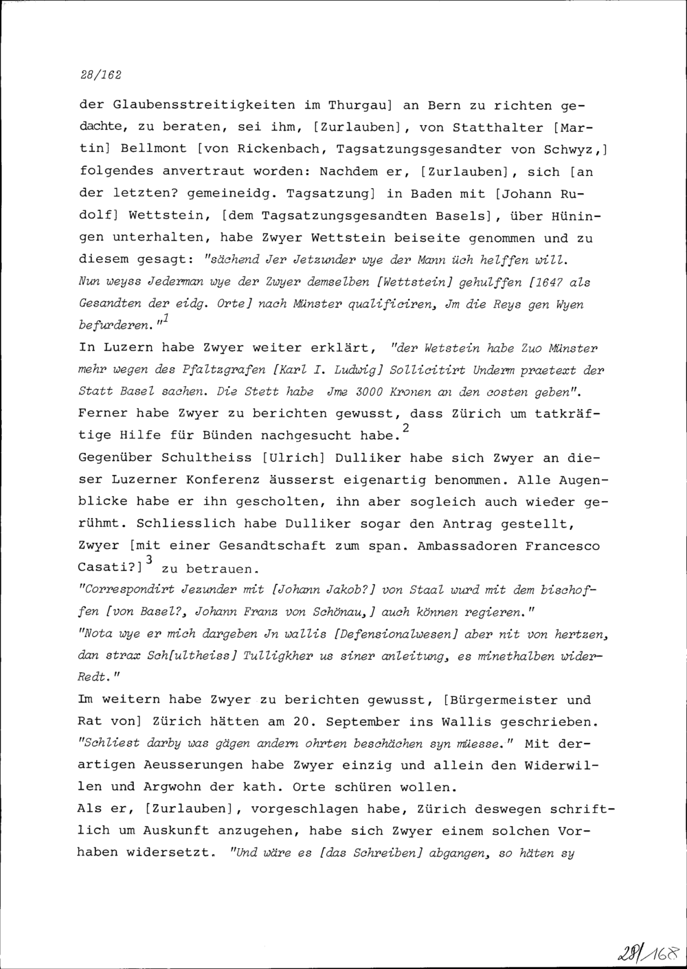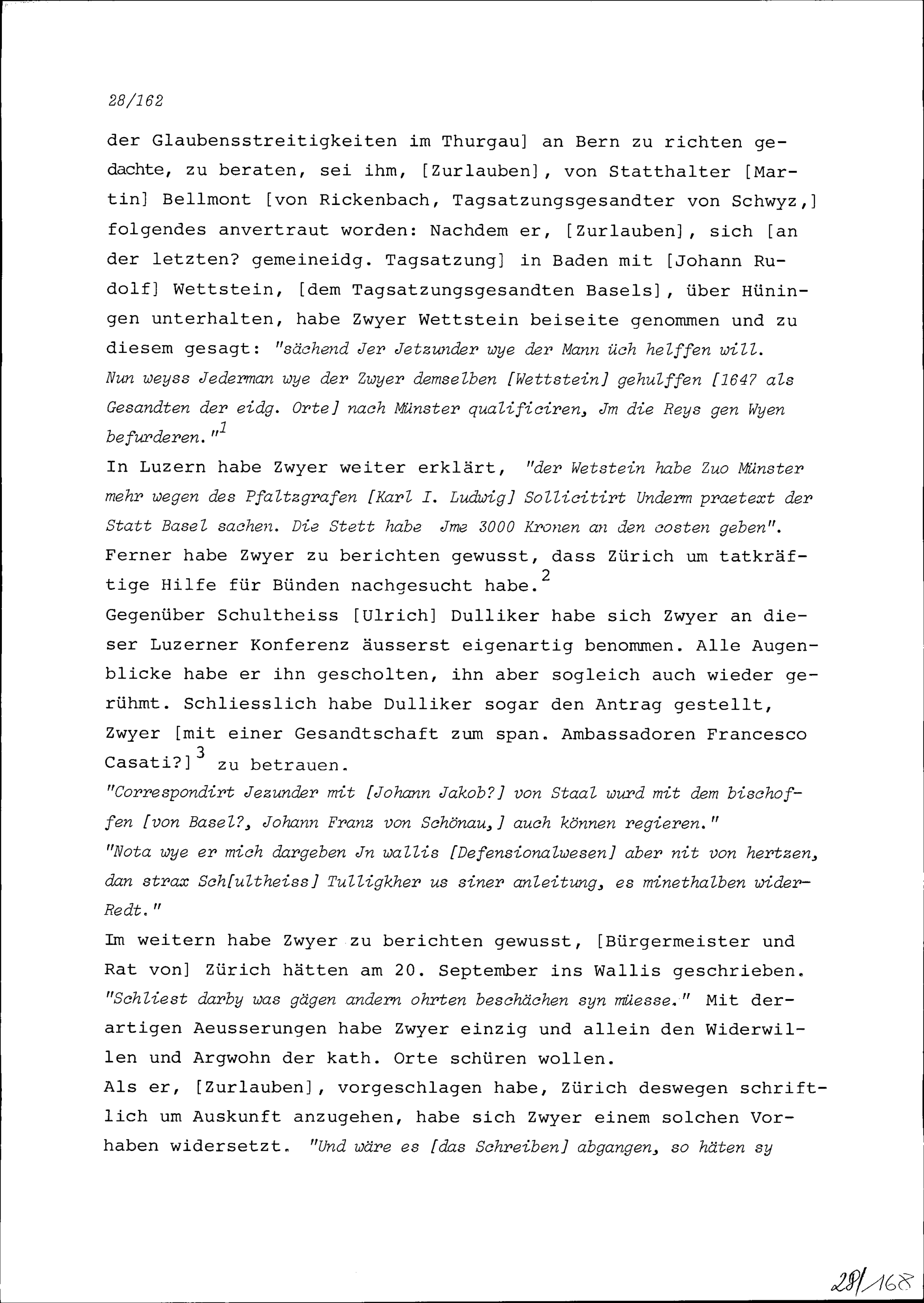 Notiz von Beat II. Zurlauben über die Tätigkeit von Sebastian Peregrin Zwyer
