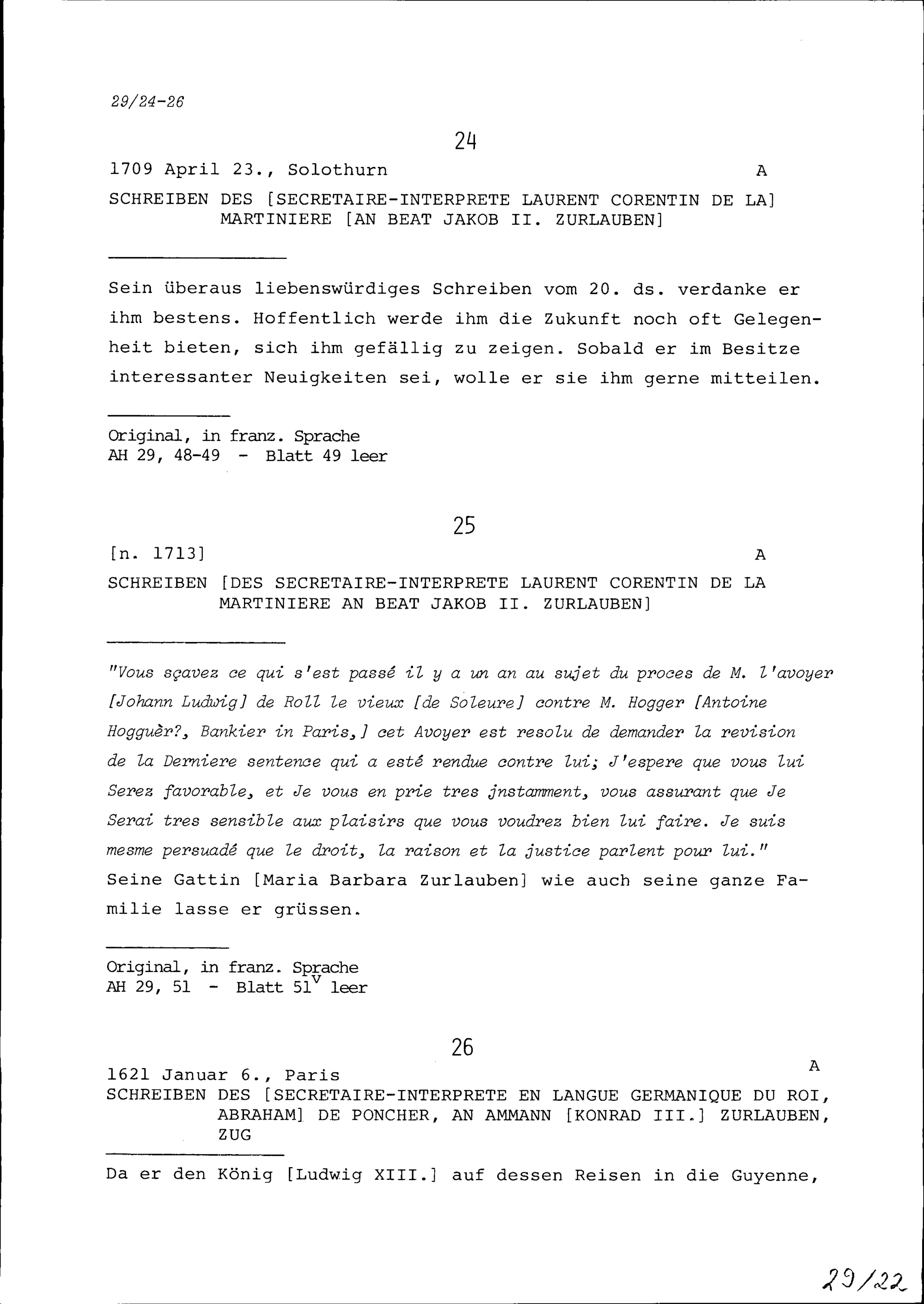 Schreiben von Laurent Corentin de la Martinière, Dolmetscher, an Beat Jakob II. Zurlauben