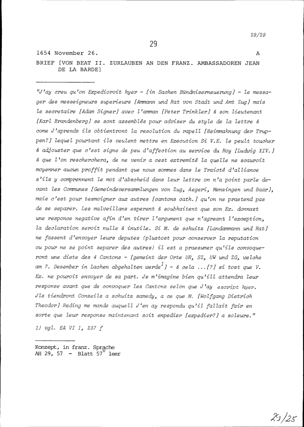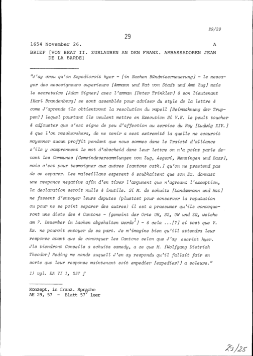 Schreiben von Beat II. Zurlauben an Jean de la Barde, Ambassador von Frankreich
