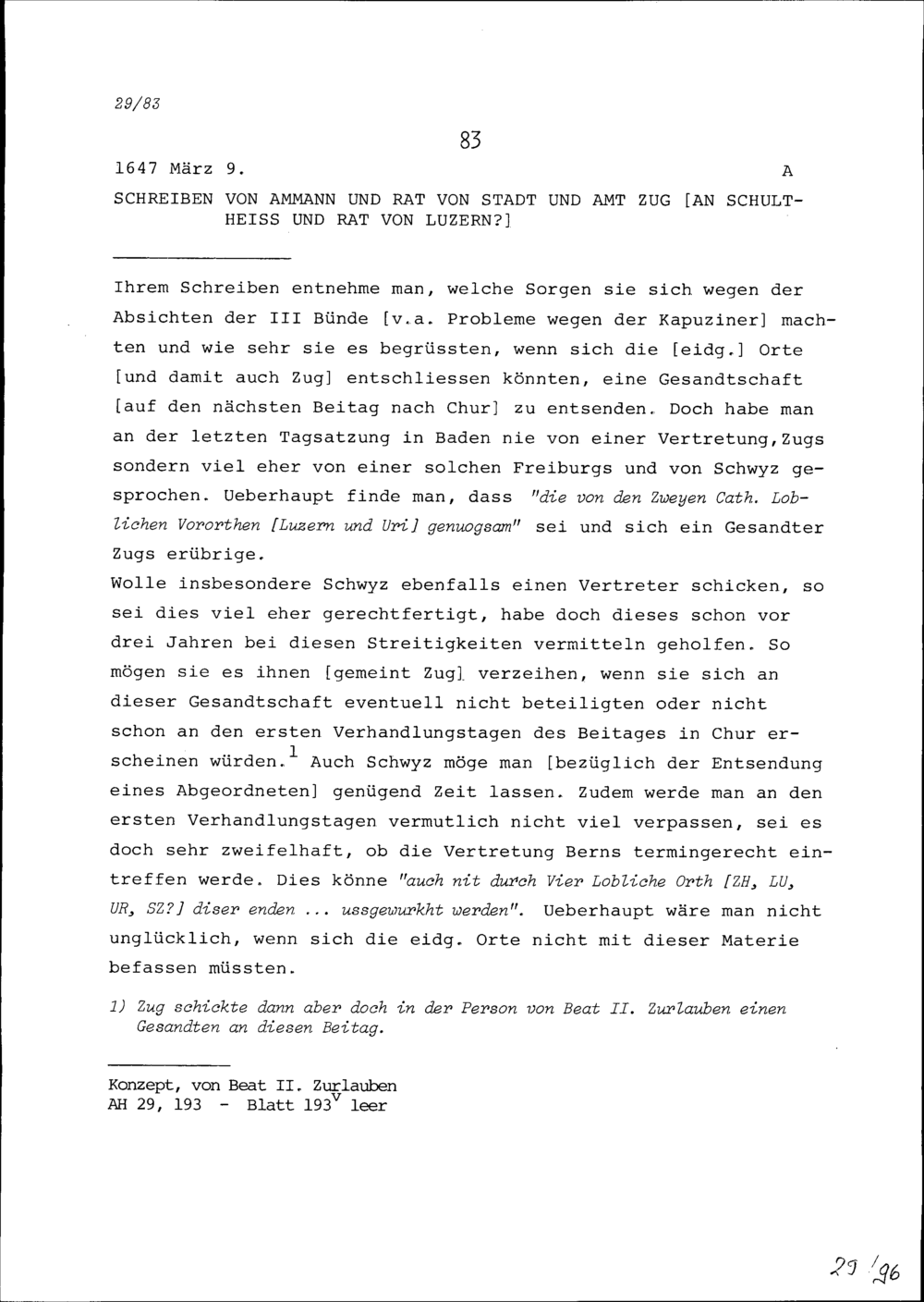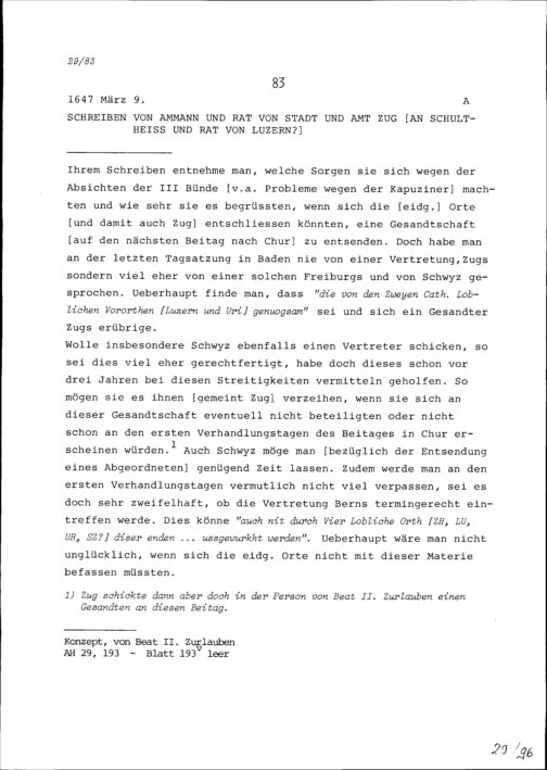 Schreiben des Ammanns und Rats von Stadt und Amt Zug an Schultheiss und Rat Luze...